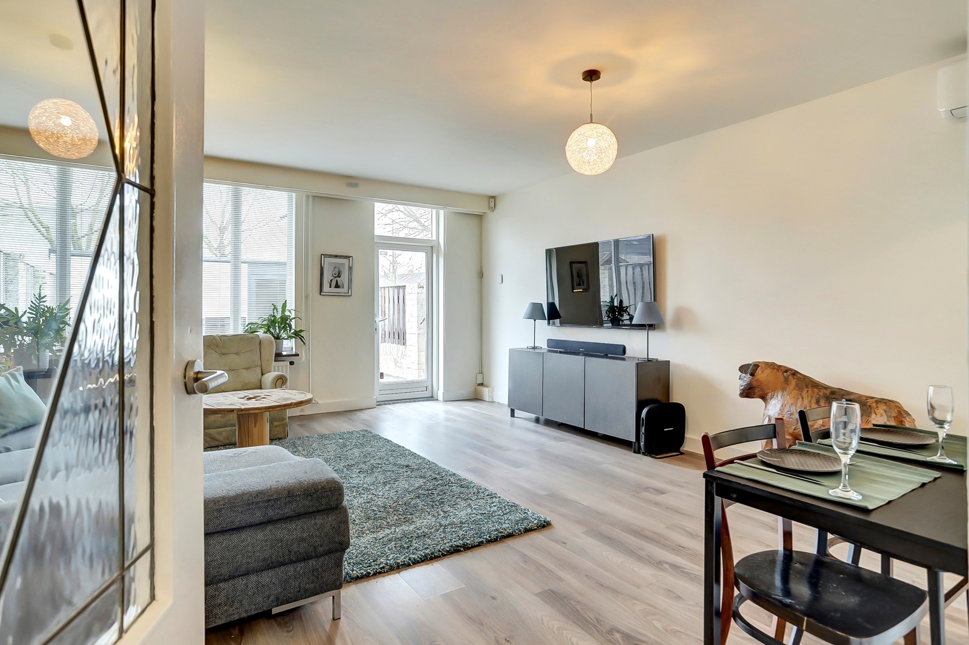 Stap binnen en laat je verrassen door de royale woonkamer. Licht, luchtig en perfect om een gezellige zit- én eethoek te maken. Het grote raam laat de zon volop binnen, terwijl de airco van 2023 zorgt dat het hier altijd aangenaam is. En vanuit de achterdeur stap je zo de tuin in, fijn toch?