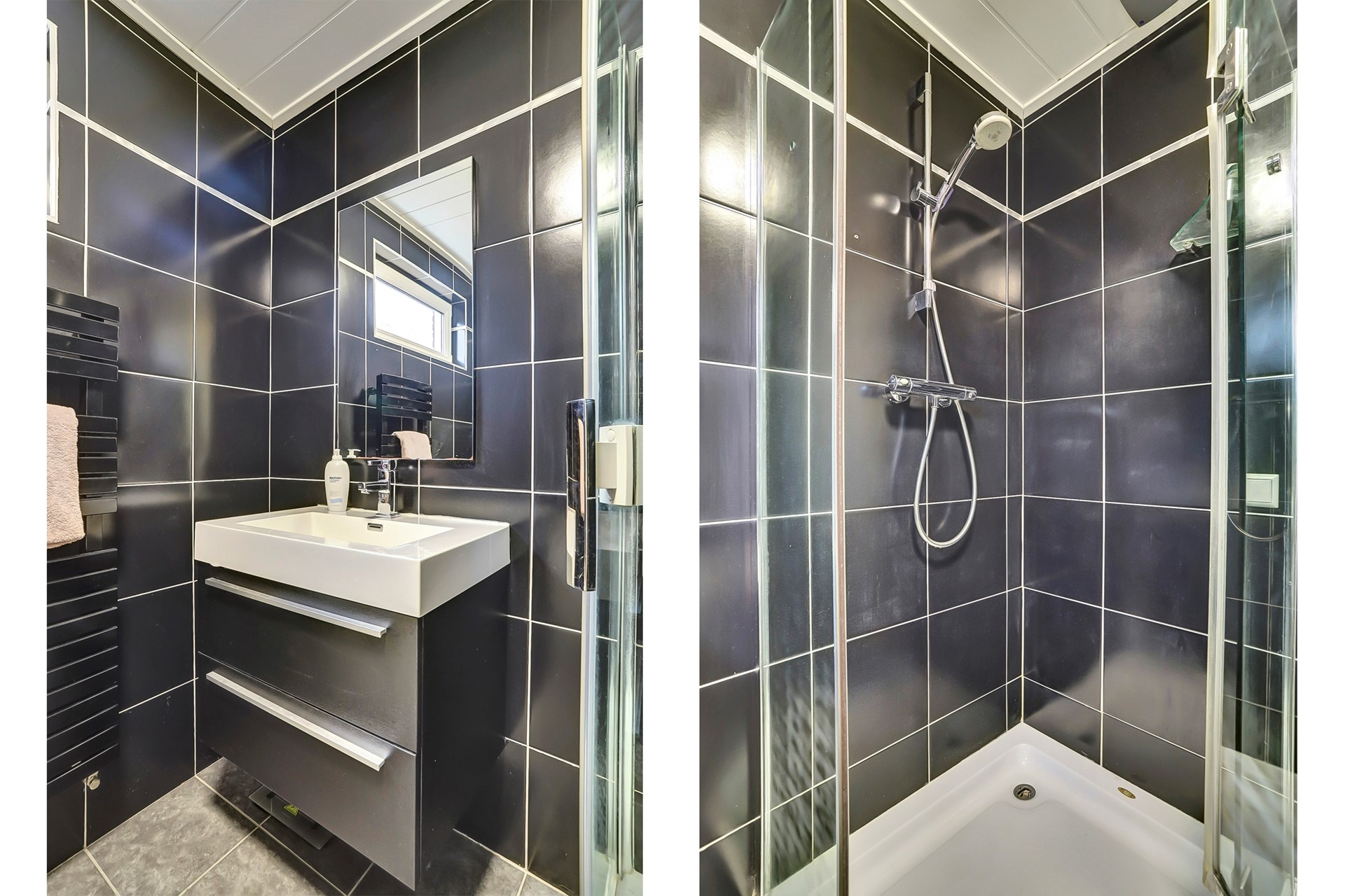 De badkamer is ruim van opzet en ligt aan de voorzijde van de woning. Volledig betegeld en voorzien van alles wat je nodig hebt voor een fijne start van de dag. De ruimte beschikt over een nette douche met glazen wand, een royaal hoekbad, een badmeubel met wastafel en een designradiator. Dankzij het raam geniet je hier van natuurlijke ventilatie.