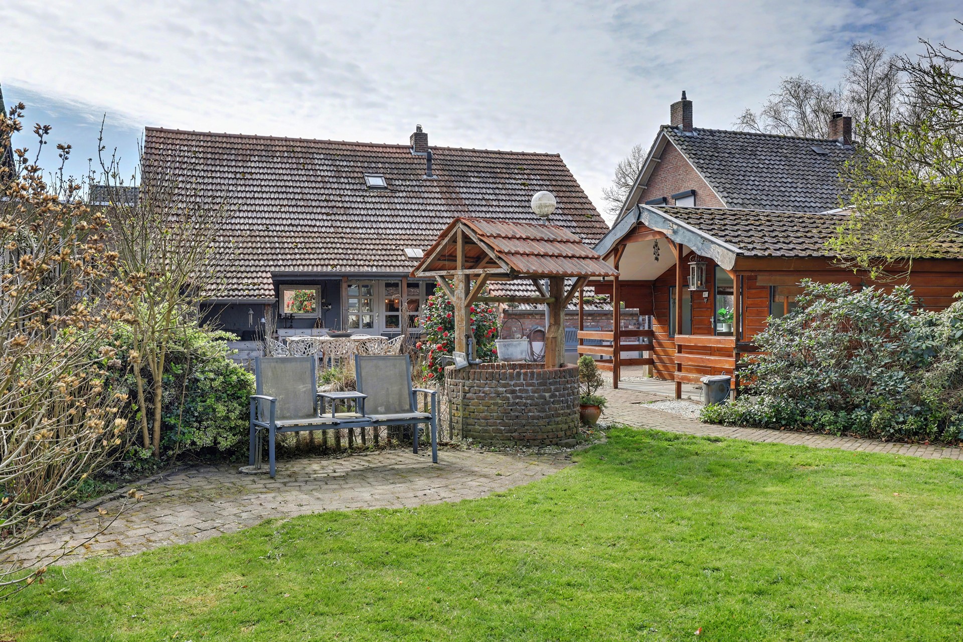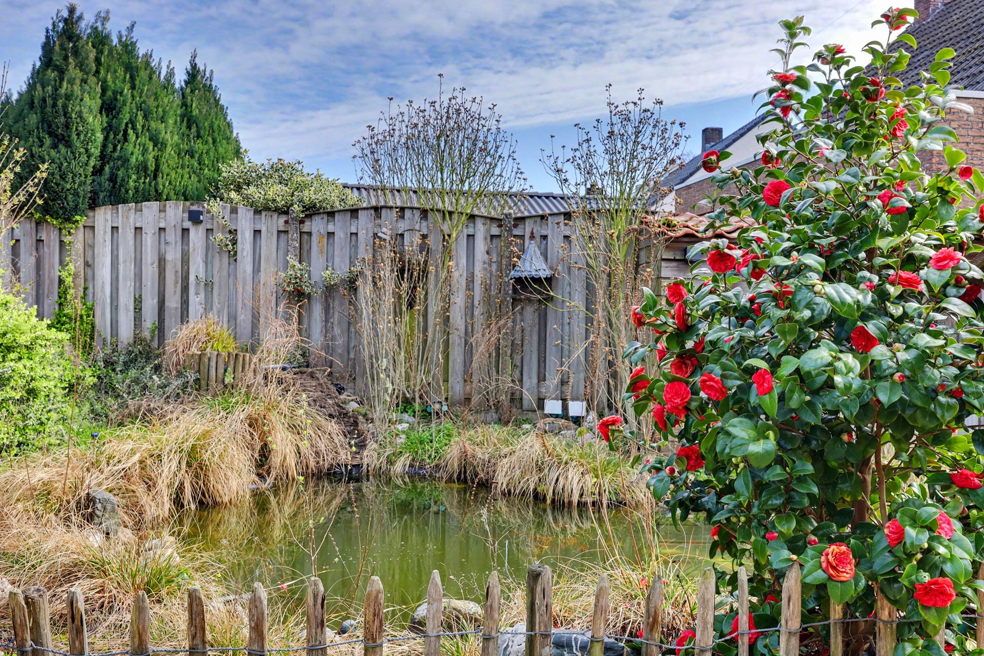 Stap de tuin in en voel de vrijheid! Direct achter het huis opent zich een groene oase, waar een groot terras uitkijkt over de glinsterende vijver en het weelderige groen. Het overdekte terras, stijlvol in lijn met het huis, nodigt uit om te ontspannen of een diner buiten te houden. Hier kun je het ritme van de dag volgen, de seizoenen ervaren en echt genieten van alles wat buiten te bieden heeft.