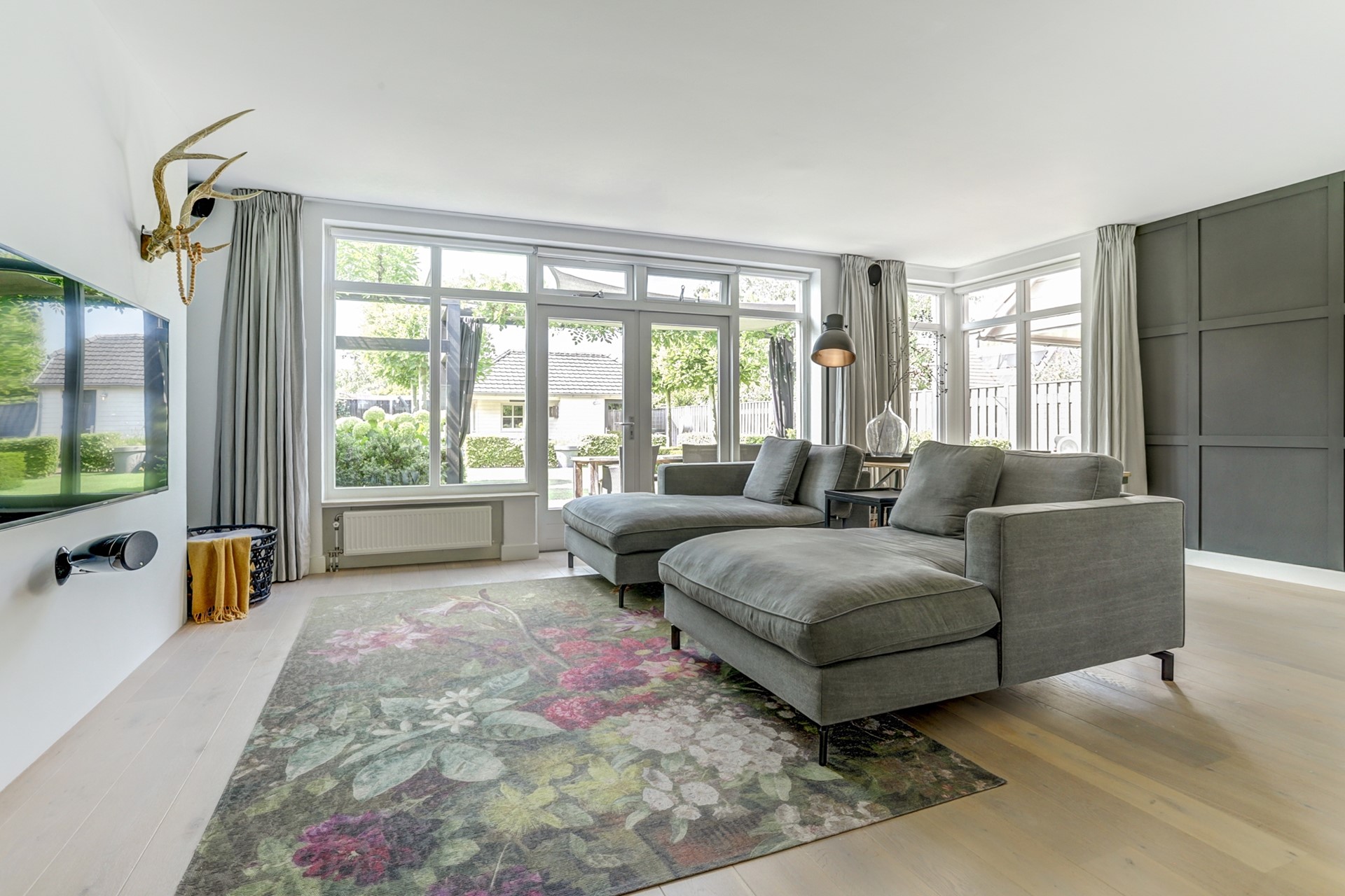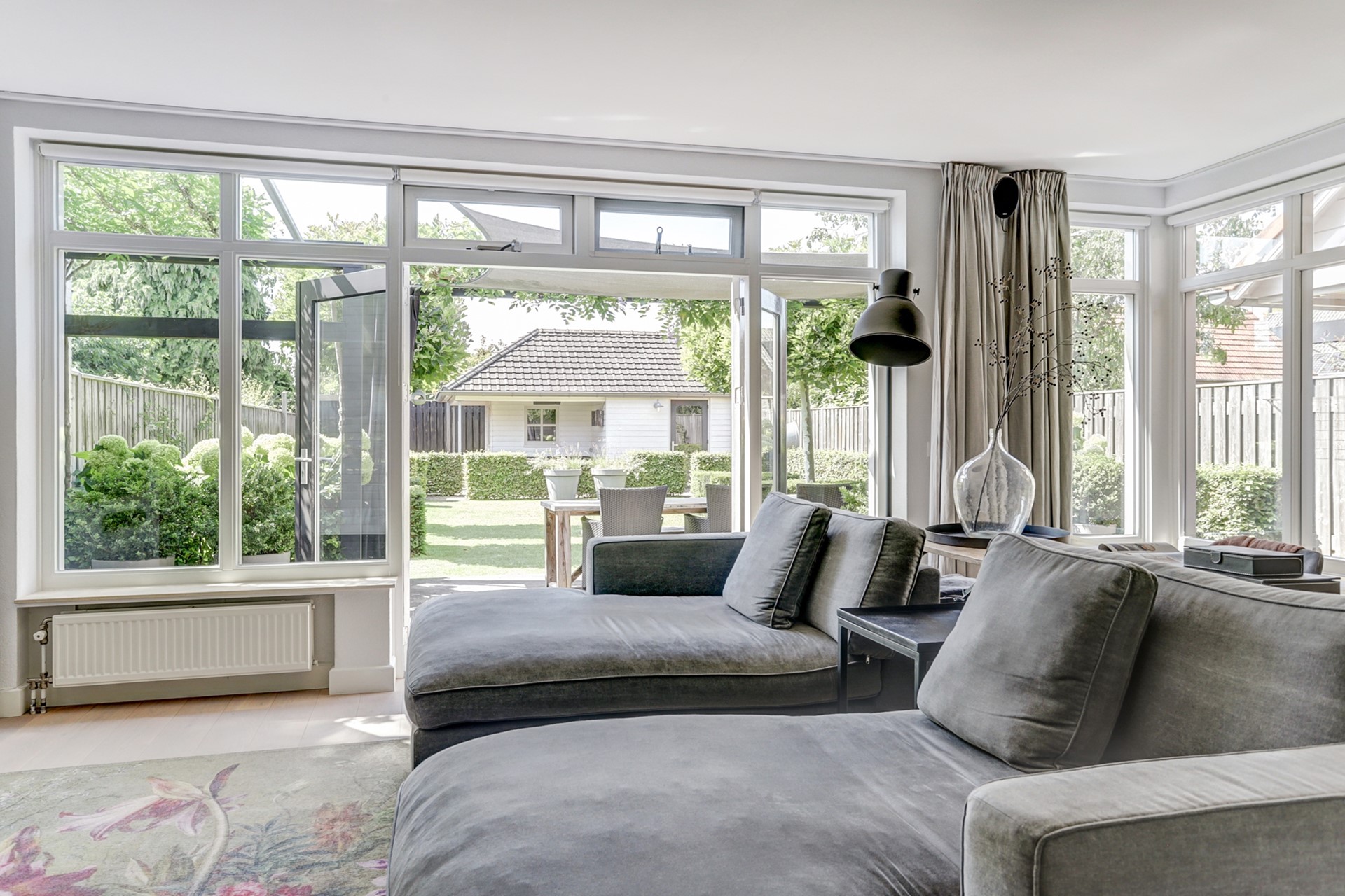 Doorlopend naar achteren vind je de fijne zithoek, waar je met gemak een hoekbank kwijt kunt. Een heerlijke plek om na een lange dag lekker neer te ploffen en te ontspannen. Dankzij de uitbouw over de volledige breedte is er volop ruimte gecreëerd en de achtergevel is volledig voorzien van glas, wat zorgt voor het nodige daglicht! Fijne openslaande tuindeuren zorgen dat het plaatje hier compleet is, gooi de deuren lekker open en haal buiten naar binnen!