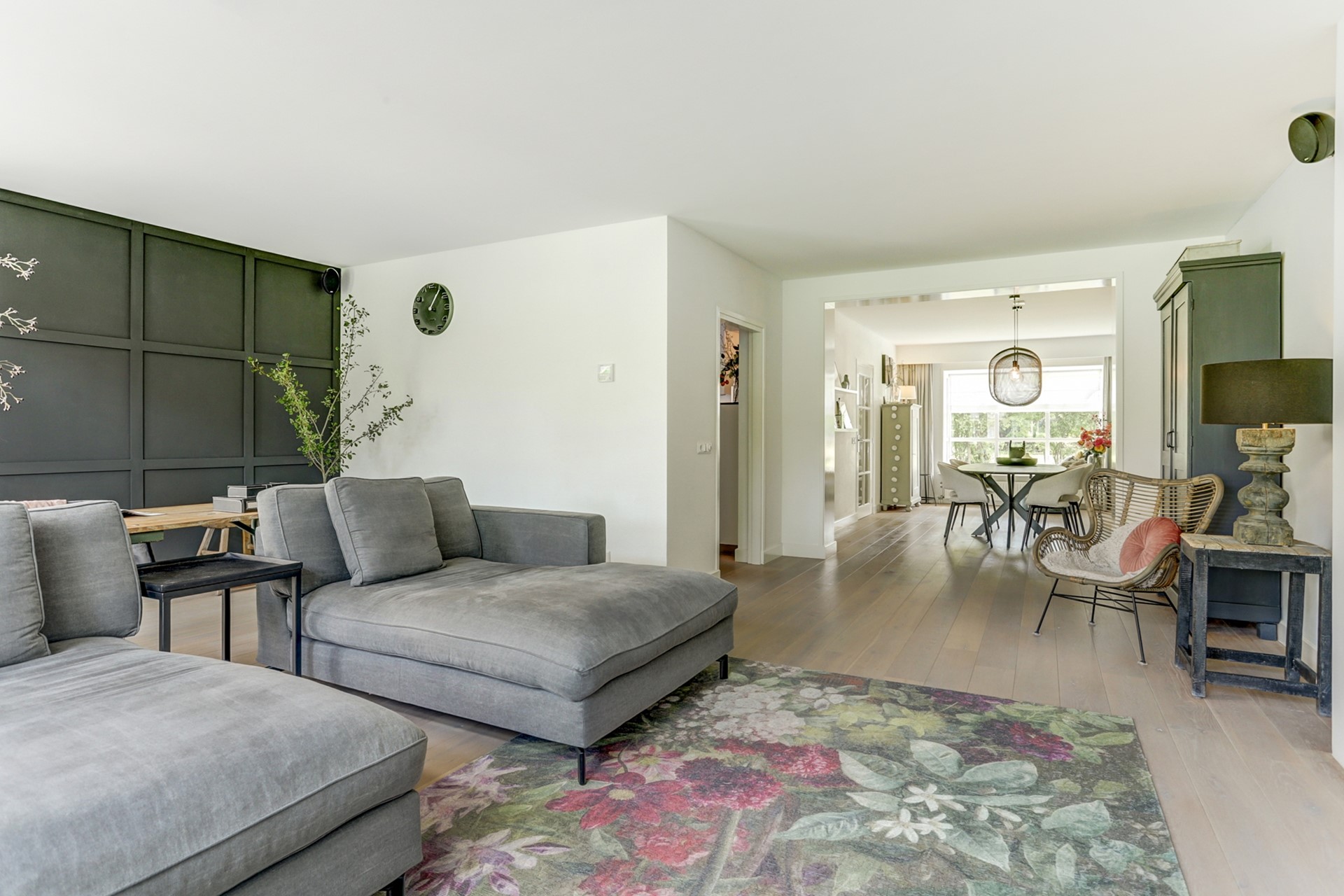 Wat een heerlijke ruimte om te verblijven. De woonkamer is fraai afgewerkt met een houten vloer met vloerverwarming, strakke wanden en strak gestucte plafonds. Aan de voorzijde is een prachtige erker geplaatst, een sfeervolle eyecatcher die niet alleen zorgt voor extra licht, maar ook een sfeervol hoekje biedt, ideaal om 's ochtends een kop koffie te drinken in de ochtendzon. De eetkamer biedt volop plek voor een eethoek. Hier kun je met het hele gezin genieten van lange diners en spelletjesavonden.
