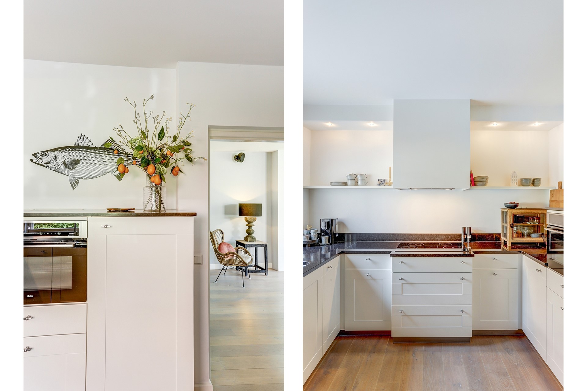De keuken is uitgerust met een: 4- pits inductiekookplaat mét warmhoudplaat en afzuigkap, vaatwasser, koelkast en een combi-oven. Ook biedt de keuken nog extra ruimte om een ruime buffetkast te plaatsen, waar jij al je servies in kwijt kunt!