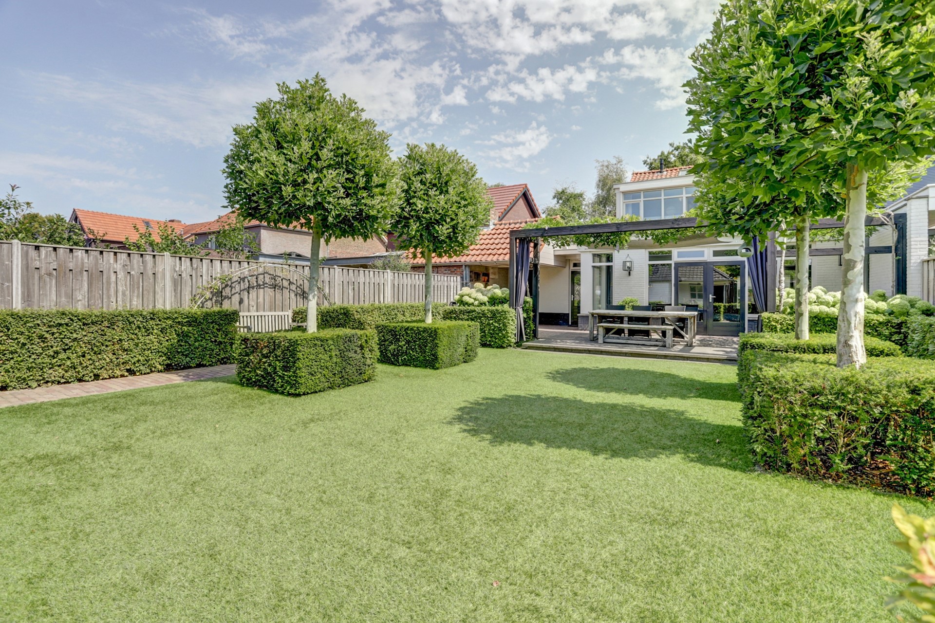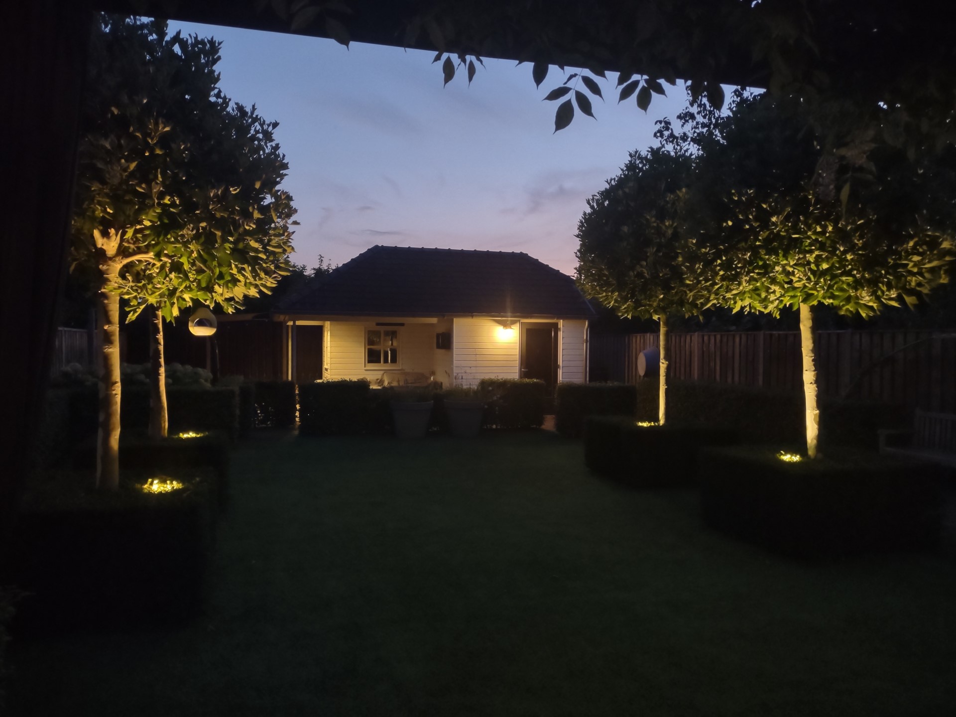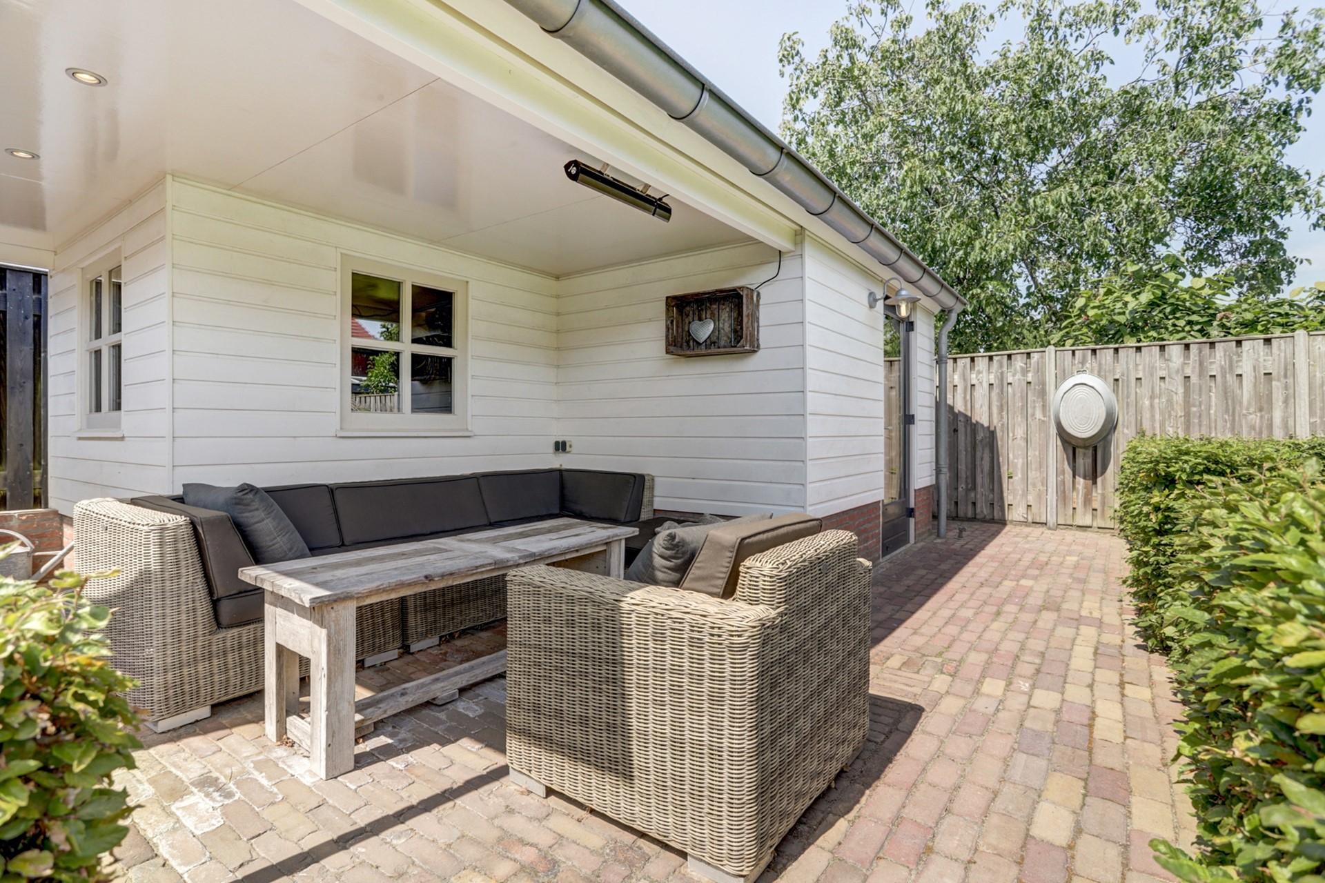 De tuin is voorzien van diverse beplanting en een groen stuk gazon (kunstgras), wat zorgt voor een fijne uitstraling. Ook is er een beregeningsinstallatie aanwezig (grondwaterpomp en pop up sproeiers). Ook ‘s avonds is het genieten in de sfeervol verlichte achtertuin. Als kers op de taart is er zelfs een buitendouche, ideaal om even af te koelen op warme zomerdagen.