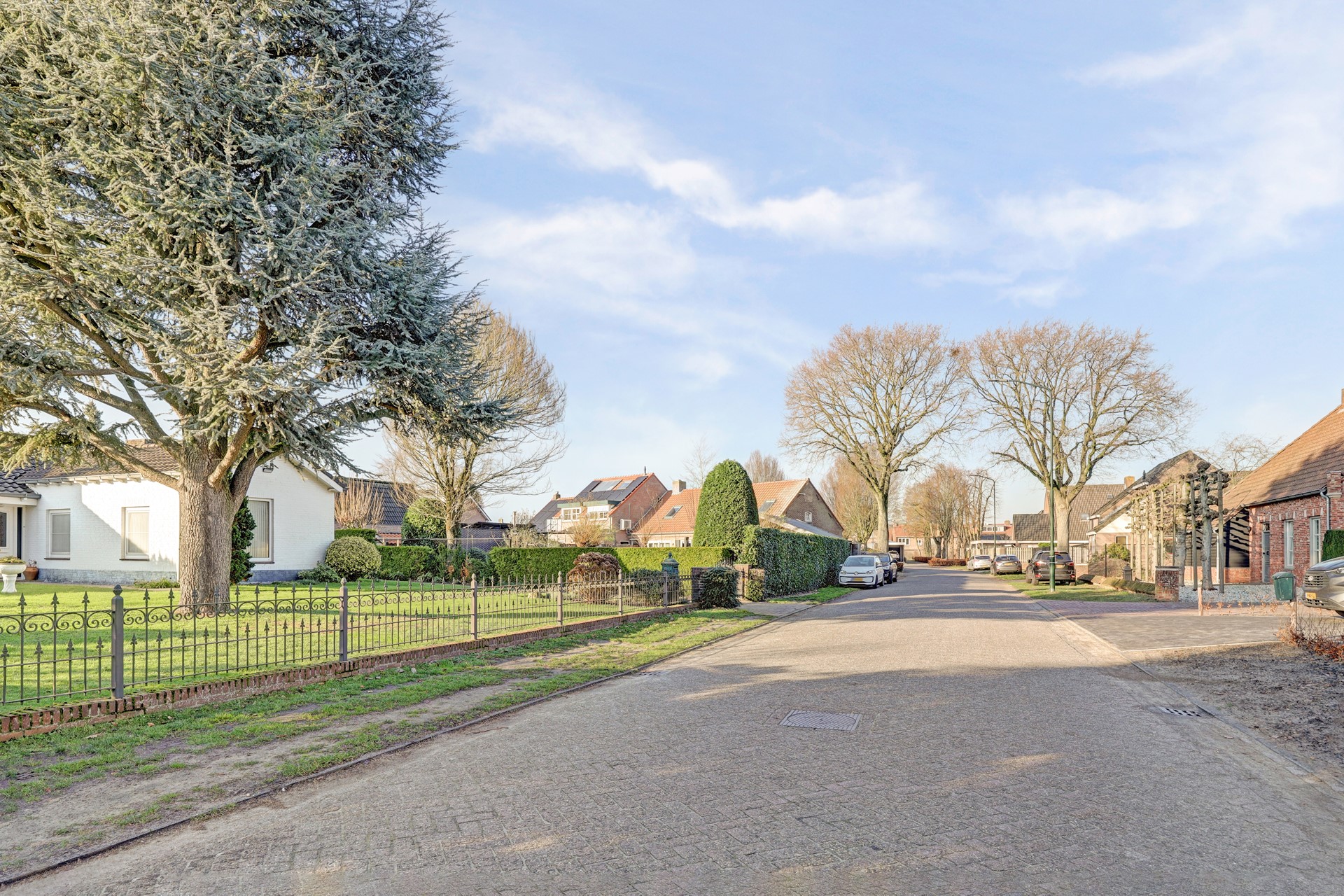 Middels een fraai en laag hekwerk, dat eenvoudig met de hand te openen is, betreed je dit prachtige perceel. Direct aan de rechterzijde bevindt zich een royale oprit met ruimte voor maar liefst vier auto’s. Vanaf de oprit wandel je via een looppad naar de voordeur van de woning. De voortuin is verzorgd aangelegd met een gazon en volwassen bomen wat zorgt voor een groene en uitnodigende eerste indruk.