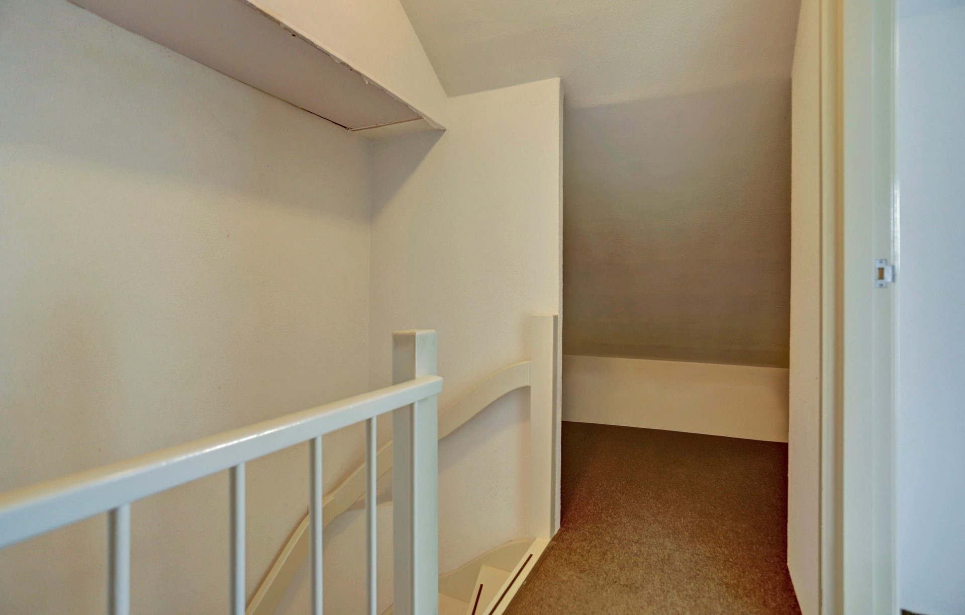 De voorzolder beschikt over extra opbergruimte onder de schuine kanten en hier bevindt zich ook de CV-ketel Atag 2015.