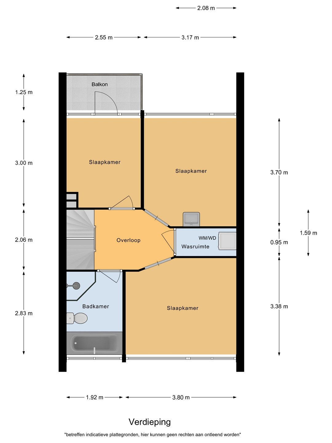 Via een vaste trap bereik je de tweede verdieping die is opgedeeld in een voor- en achterzolder.