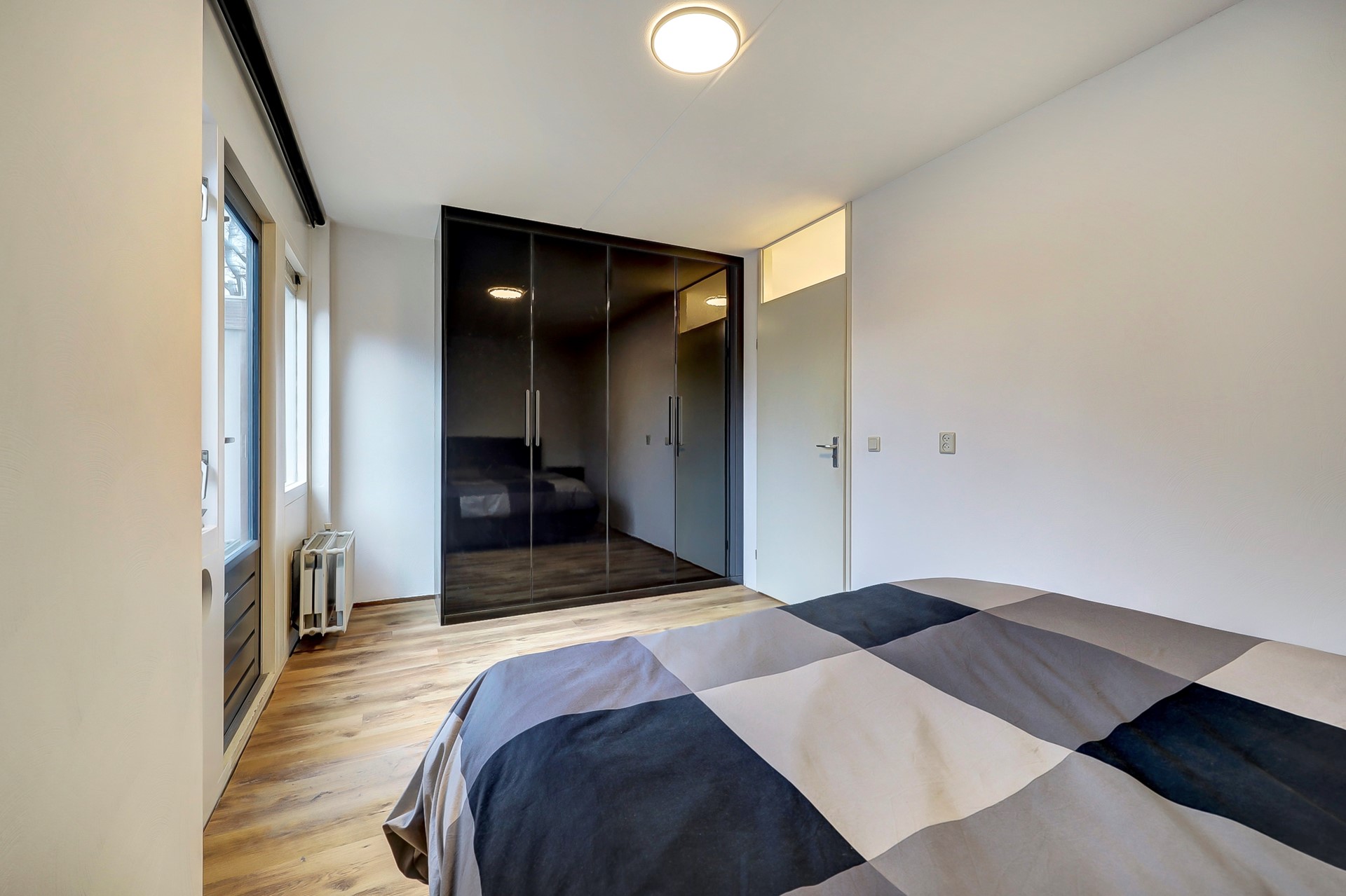 In het achterste deel is de ruime slaapkamer gesitueerd met toegang tot het buitenleven. De slaapkamer is royaal opgezet en beschikt daarmee over voldoende ruimte voor een tweepersoonsbed en een vaste inbouwkast.