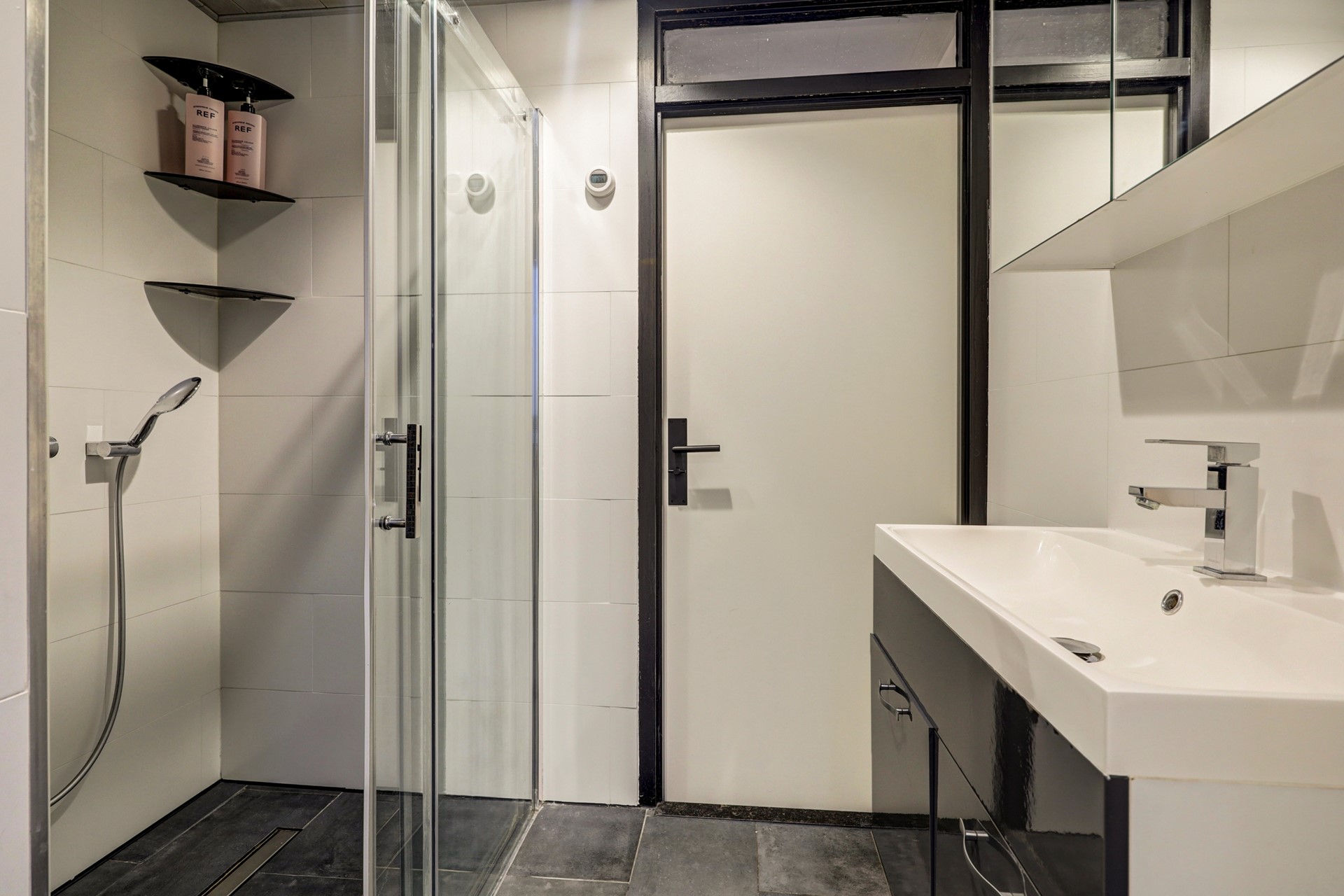 Deze badkamer is in 2018 vernieuwd, volledig betegeld met neutrale kleurtinten. De badkamer is voorzien van alle gemakken waaronder een grote inloopdouche, hangcloset, designradiator, mechanische ventilatie en een fraai wastafelmeubel. Het raam geeft naast daglicht ook de mogelijkheid om de ruimte te ventileren.