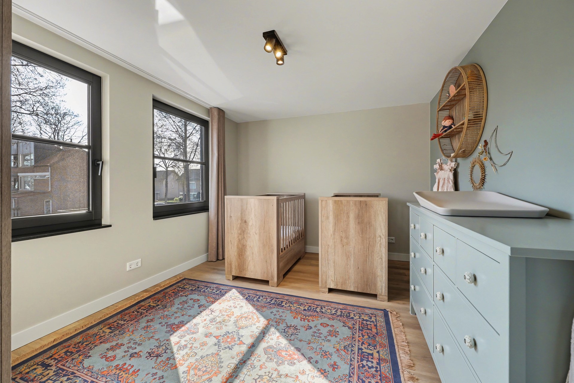 Deze kamer is eveneens ruim en hoogwaardig afgewerkt en daarmee perfect geschikt als kinder-, logeer- of tweede slaapkamer. Ook hier zijn praktische details zoals een vast internet aansluiting en horren aanwezig, wat bijdraagt aan het comfort en gebruiksgemak.