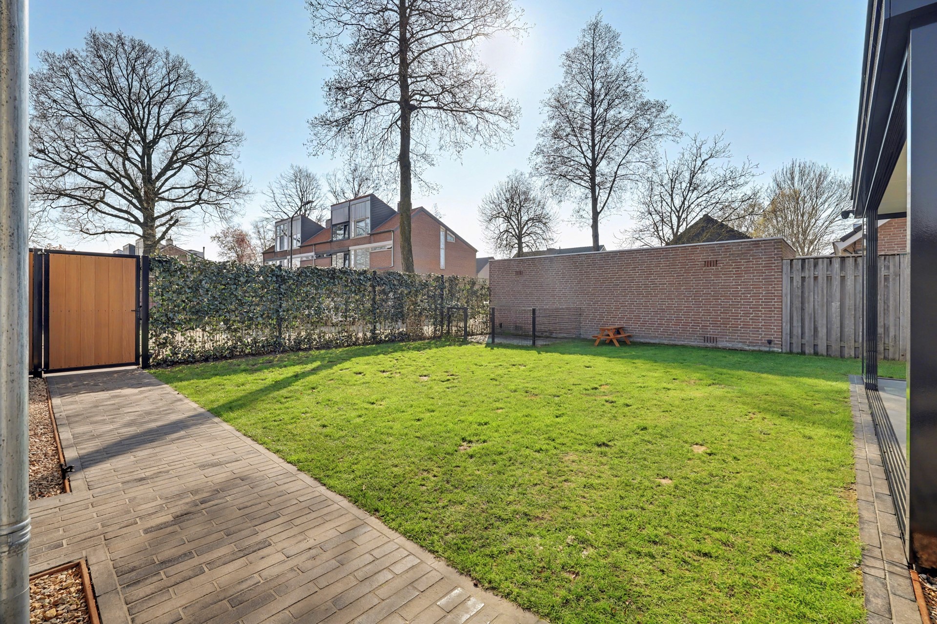 In de tuin zijn meerdere stroompunten aanwezig (deels geschakeld) en dankzij de twee natuurlijke doorgangen aan beide zijkanten van de woning is de achtertuin altijd praktisch bereikbaar. Aan de achterzijde bevindt zich tevens een chique tuinpoort.