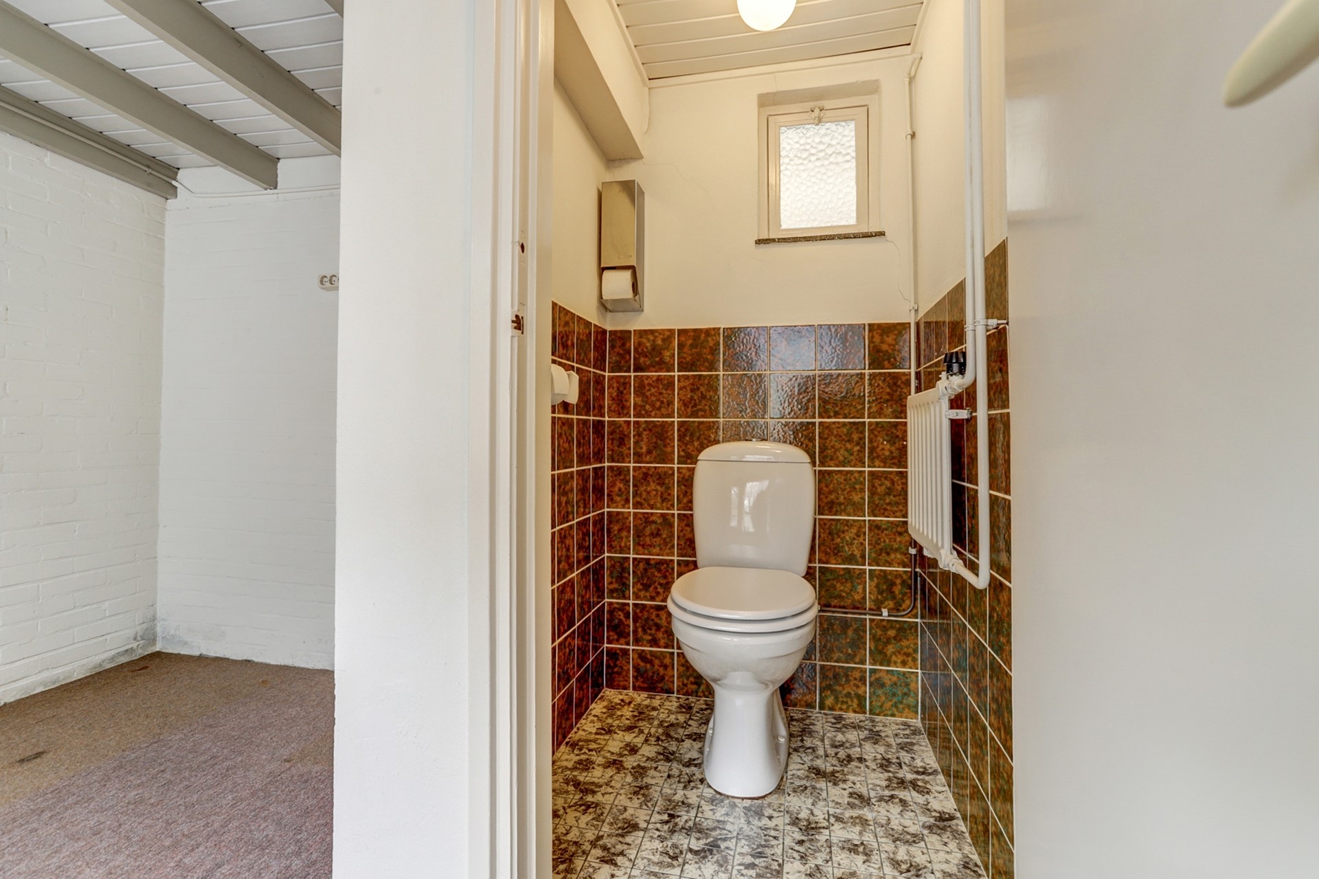 Achterom? Die bereik je via het achterportaal, waar aan de linkerzijde een deur toegang geeft tot de inpandige berging en aan de rechterzijde een deur naar de bijkeuken. In het achterportaal vind je een halfhoog betegeld toilet en volop ruimte voor bijvoorbeeld een extra koelkast of diepvries.