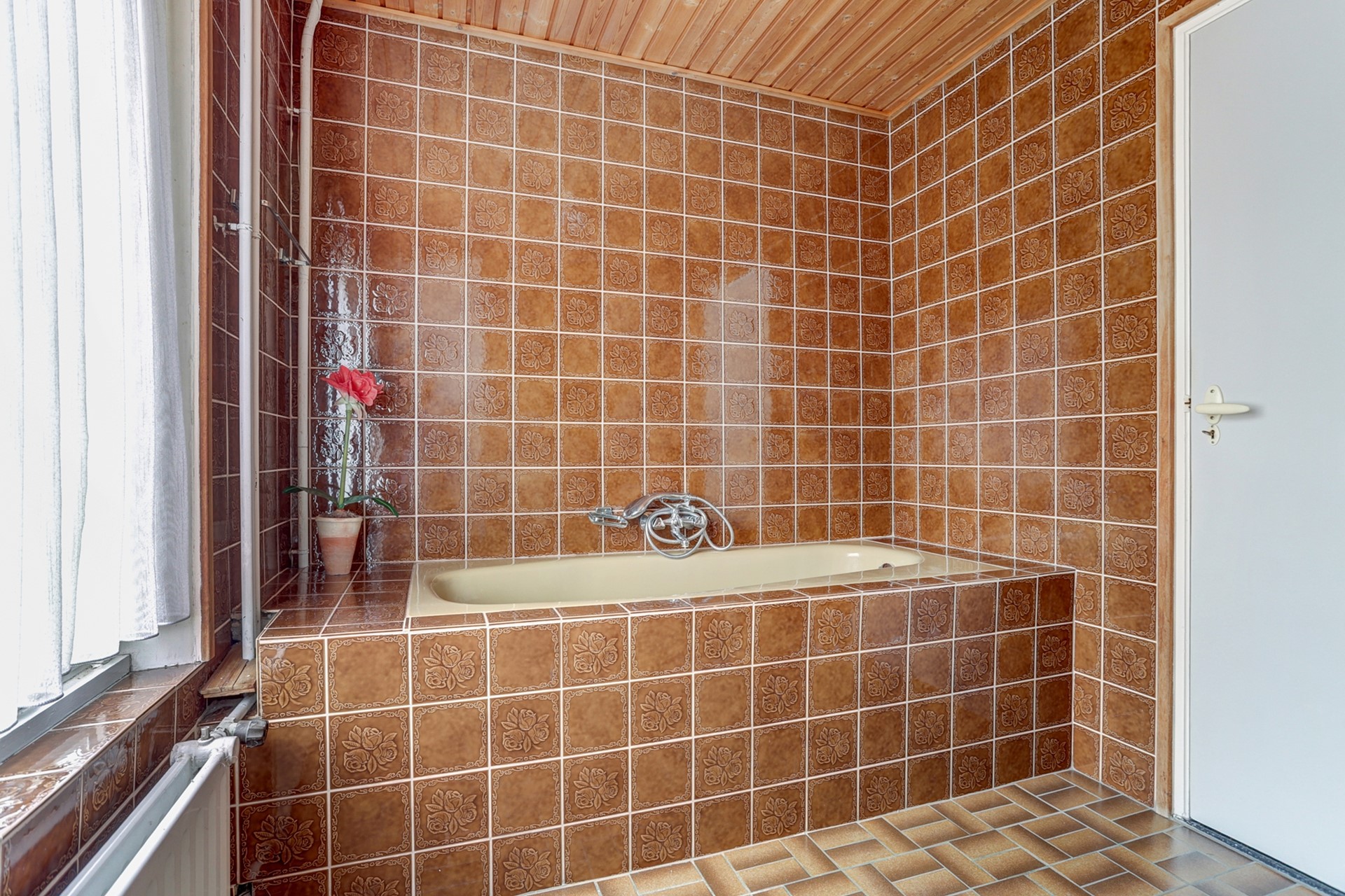 De badkamer is weliswaar verouderd, maar goed onderhouden en prettig ingedeeld. Momenteel is de ruimte uitgerust met een ligbad, toilet en wastafel. Daarnaast beschikt de badkamer over een inbouwkast, ideaal om handdoeken, toiletartikelen en shampoo overzichtelijk op te bergen.