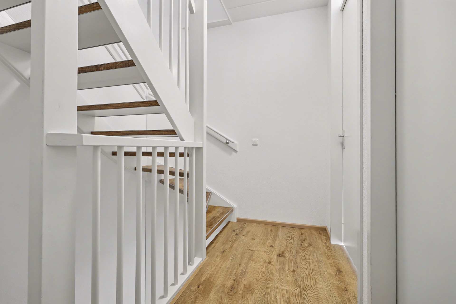 Zodra je binnenkomt voel je direct de ruimte en het fijne woongevoel. De hal is praktisch en ruim opgezet, waardoor alles logisch aanvoelt en je hier prettig kunt bewegen. Vanuit de hal heb je toegang tot de toiletruimte, de provisiekast, de trap met fraaie trapbekleding naar de eerste verdieping én de woonkamer.