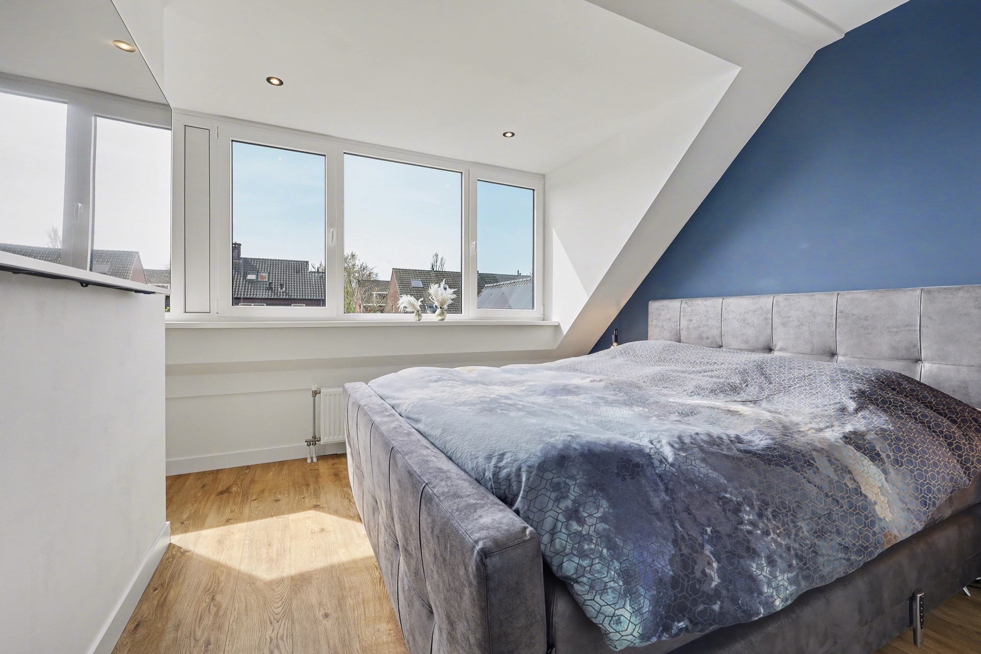 Wat een plaatje is deze master bedroom! En die naam is meer dan terecht. In 2022 is de kamer nog ruimtelijker geworden dankzij een dakkapel dat zich uitstrekt over de volledige breedte. Dit zorgt niet alleen voor extra ruimte, maar ook voor een prachtige, natuurlijke lichtinval.