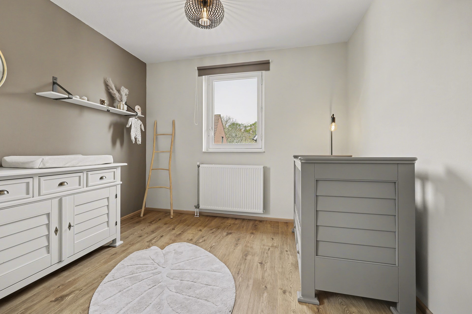 De kids hebben geluk! Slaapkamer twee is helemaal klaar voor een kleine dreumes en voelt direct licht en gezellig aan. Deze kamer bevindt zich aan de voorzijde van de woning en profiteert van een prettige lichtinval dankzij de raampartijen aan de voor- en zijkant. Het raam aan de voorzijde is uitgevoerd met een praktische draai-kiepfunctie en voorzien van HR++ beglazing.