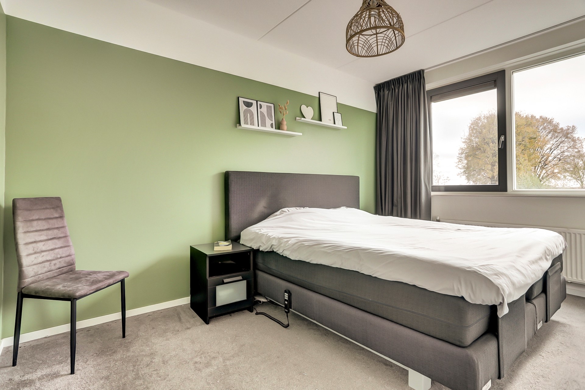 De master! Ruim van opzet en aan de tuinzijde gesitueerd, waardoor je geniet van heerlijk veel licht dankzij het grote raam. Net als de andere slaapkamers is de afwerking neutraal gehouden met vloerbedekking, een rustige wandafwerking met hier en daar een vleugje kleur en een spuitwerkplafond.