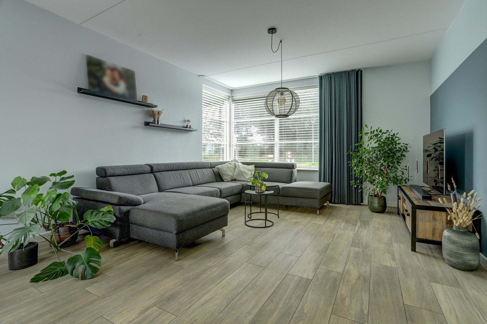Stap de ruime woonkamer in en voel het meteen; 33 m² aan woongenot waar licht, ruimte en uitzicht samenkomen. Licht? In overvloed! Dankzij het speelse hoekraam aan de voorzijde, een extra zijraam én die grote schuifpui aan de achterkant baadt de ruimte de hele dag in natuurlijk licht.
