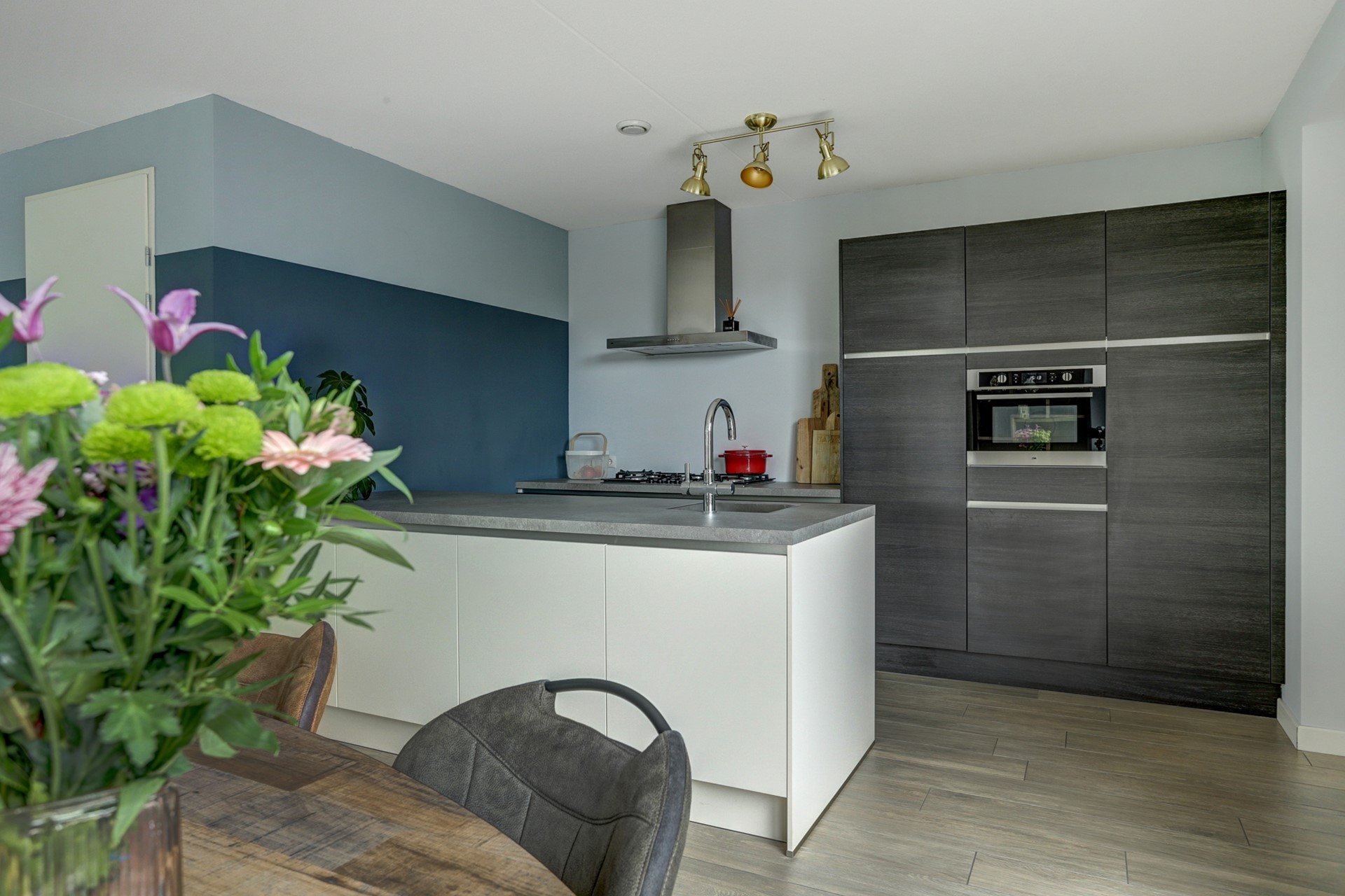 De keuken is niet alleen mooi om te zien, maar ook van alle gemakken voorzien. Denk aan een 6-pits gaskookplaat met strakke afzuigkap, een combi-magnetron, koelkast, vaatwasser én een spoelbak met Quookerkraan.