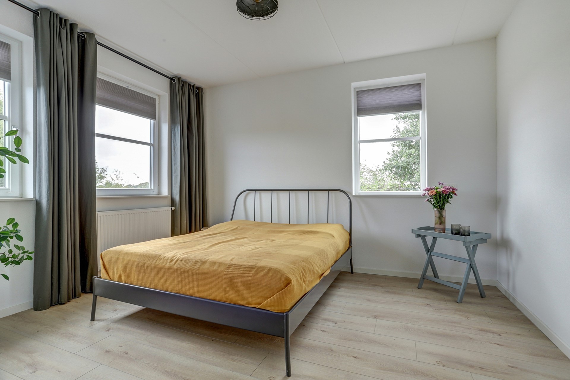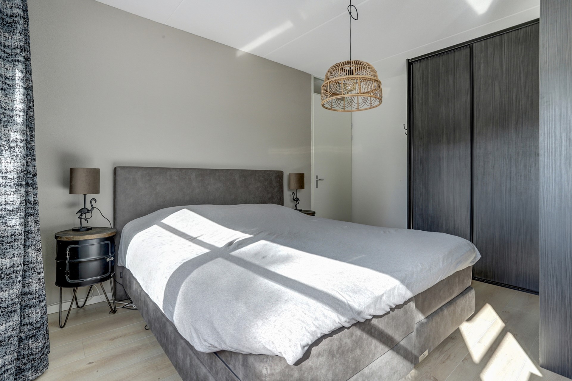 Aan de voorzijde vind je twee slaapkamers, waaronder de master met een prachtig uitzicht! Deze masterbedroom is fijn ingedeeld met een speels hoekraam dat voor extra sfeer zorgt, een slimme vaste kastruimte in hoekopstelling én genoeg plek voor een comfortabel tweepersoonsbed. De afwerking is lekker neutraal met een strakke laminaatvloer en een rustige wand- en plafondafwerking.