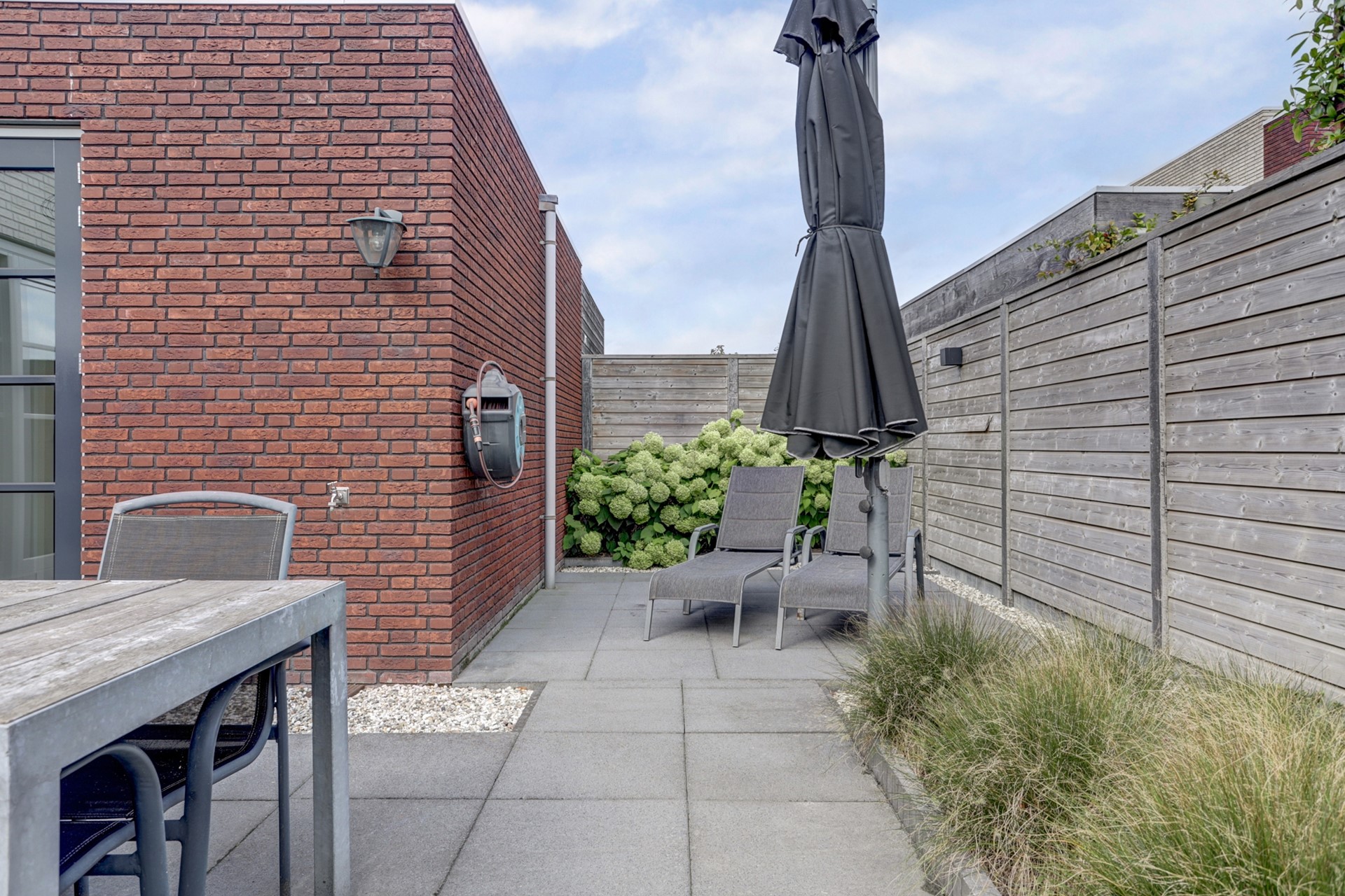 Dankzij de L-vormige indeling heb je volop ruimte: een groot terras direct achter het huis én een meer beschutte plek achter de garage, ideaal voor een loungeset of buitenkeuken.