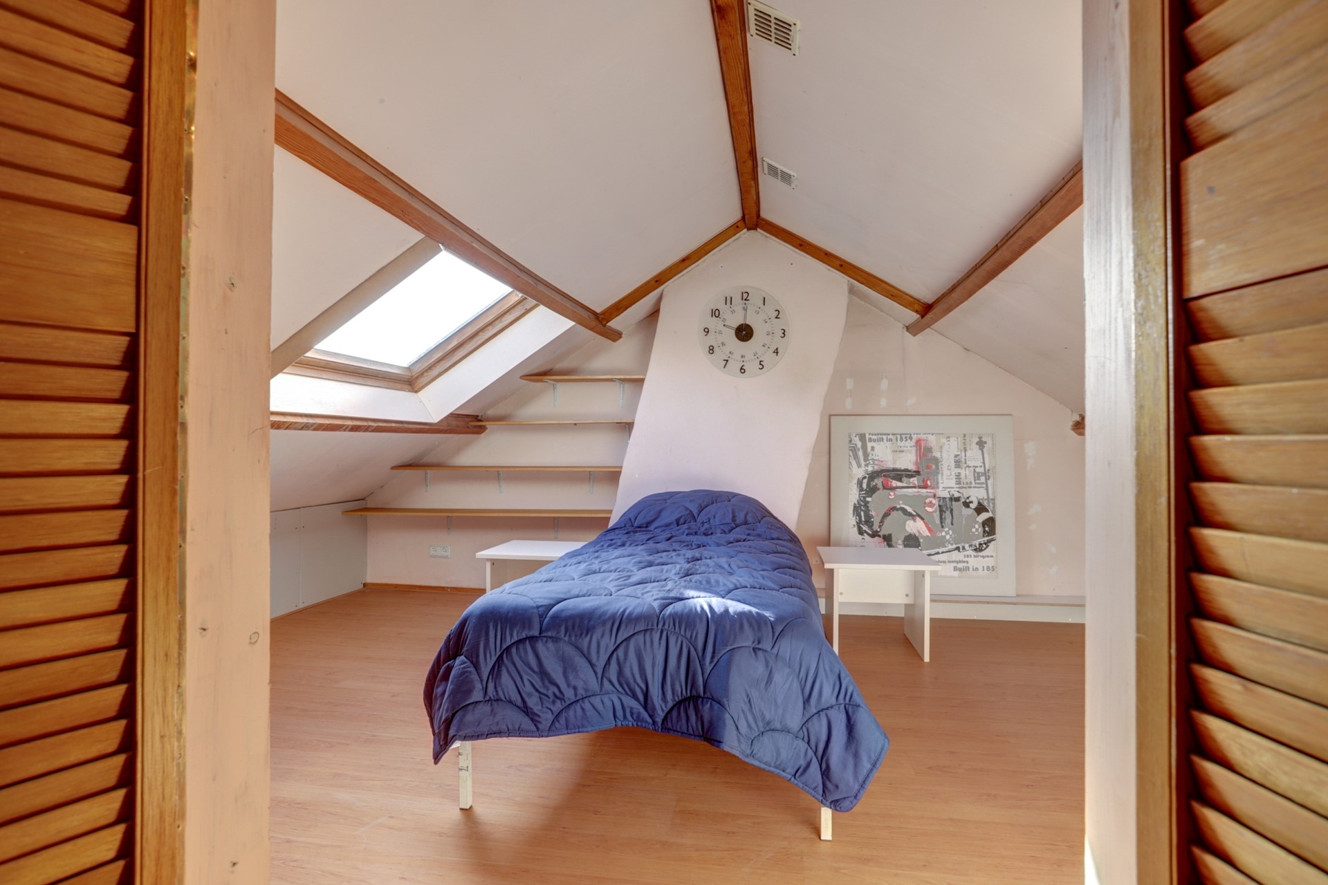 Extra fijn aan deze woning is de vaste trap die door de huidige bewoonster is geplaatst naar de zolder. Hierdoor is deze verdieping nu prima te gebruiken als extra leefruimte.