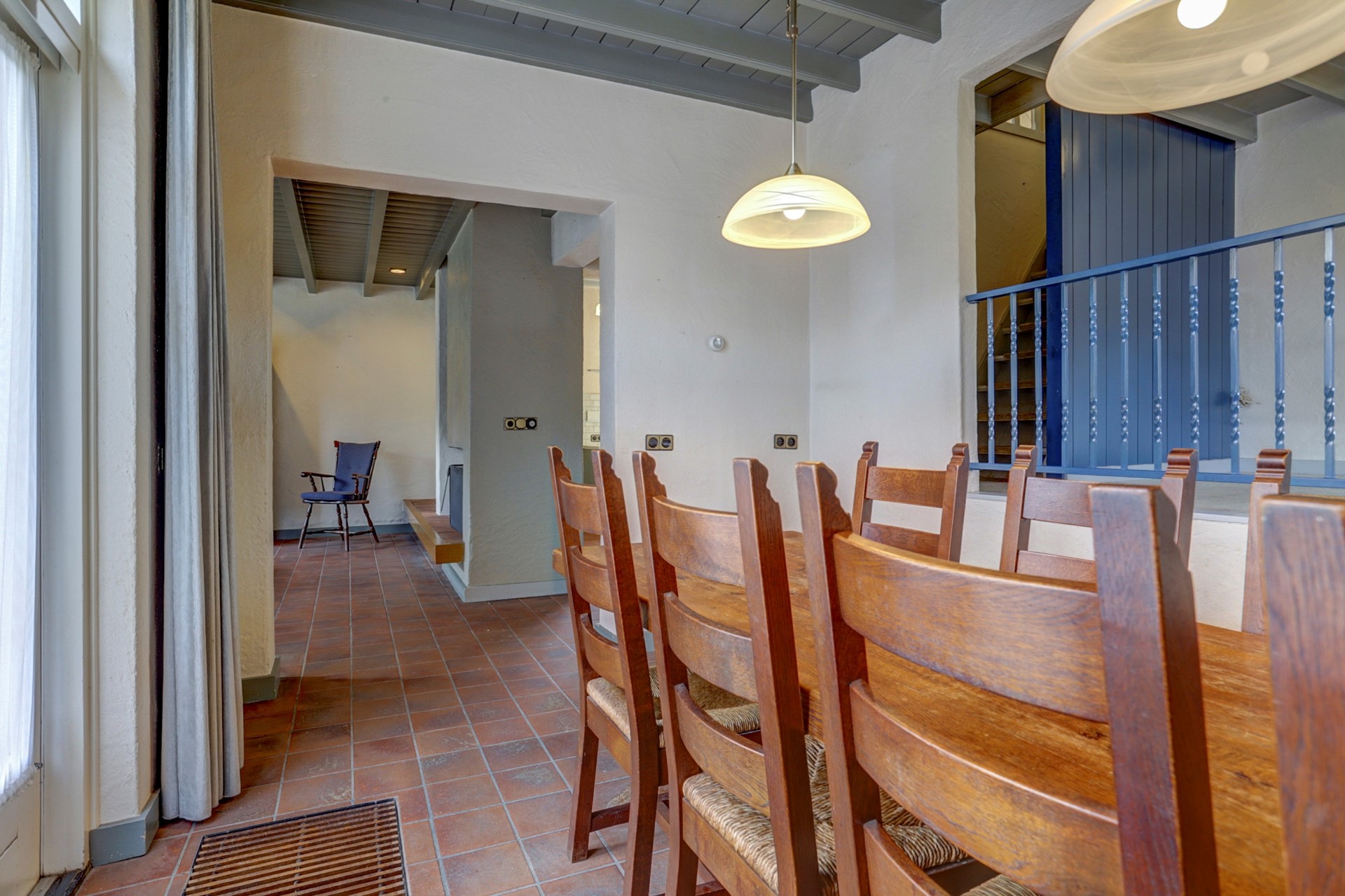 Van het imposante, hoge balkenplafond tot de charmante raampartijen waar het licht zo mooi door naar binnen valt en natuurlijk de stijlvolle Oud-Hollandse plavuizen die de ruimte diepte en karakter geven, hier klopt zóveel. Alles voelt doordrenkt van warmte, sfeer en historie.