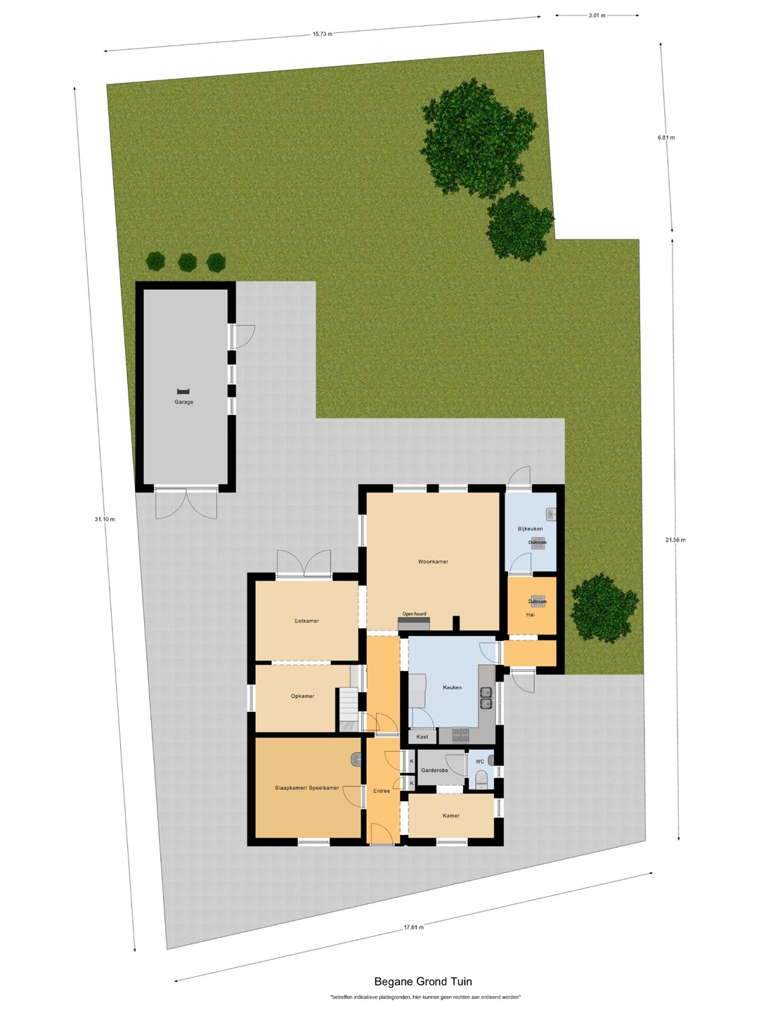 De tuin, gelegen op het rustige Noord-Oosten, biedt een oase van groen, rust en privacy. De vrijstaande garage, zorgvuldig vormgegeven in stijl met de woning, complementeert het geheel.