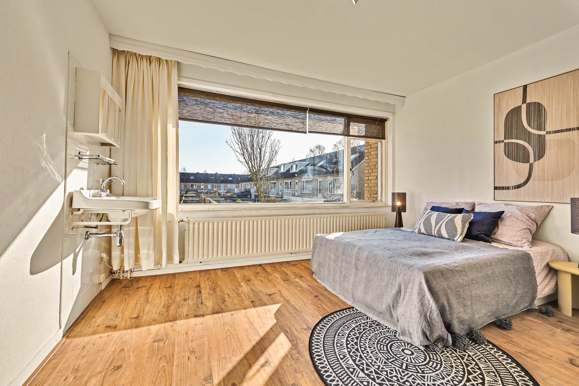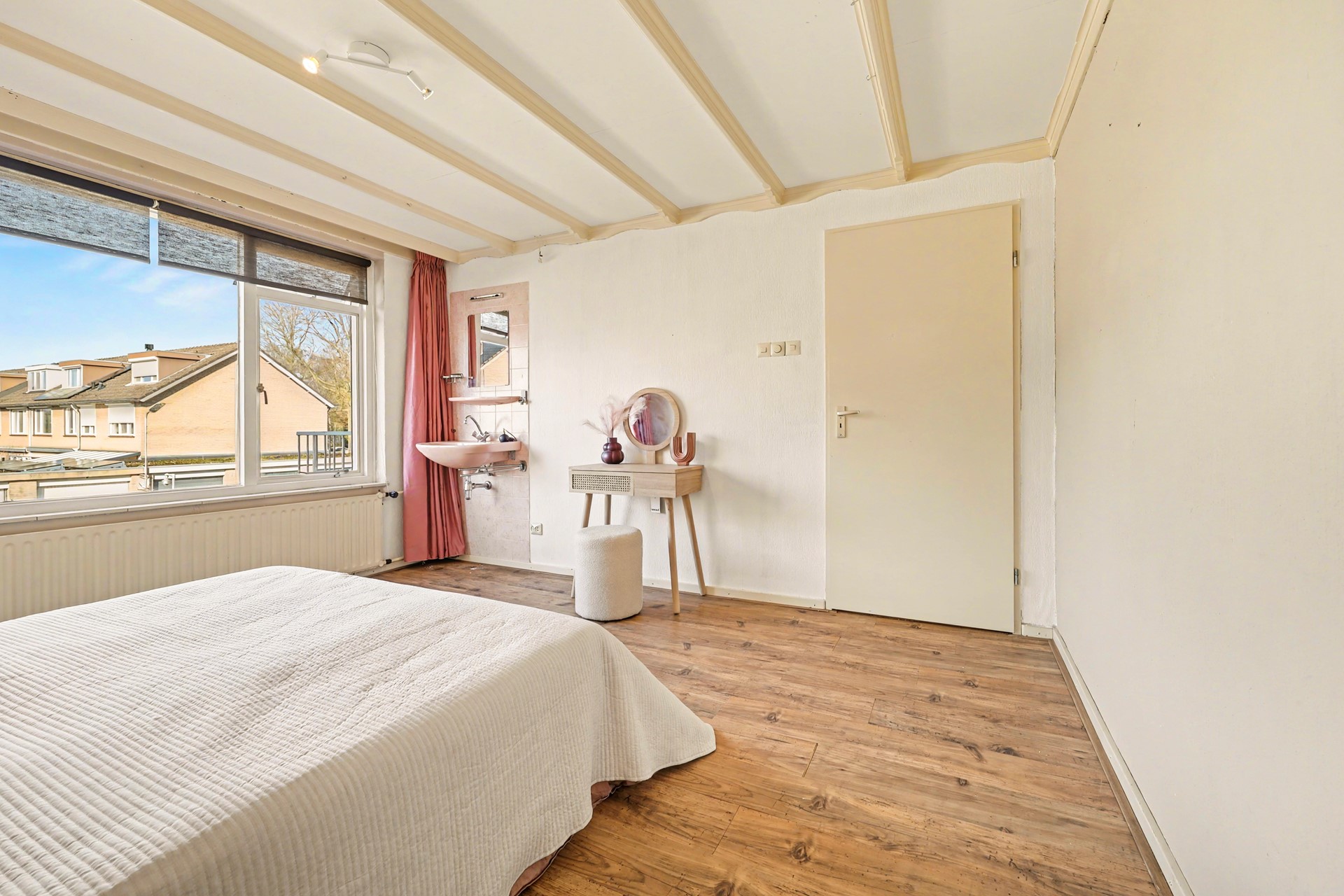 • Tweede slaapkamer: aan de voorzijde, royaal van opzet, met wastafel en veel natuurlijk licht.