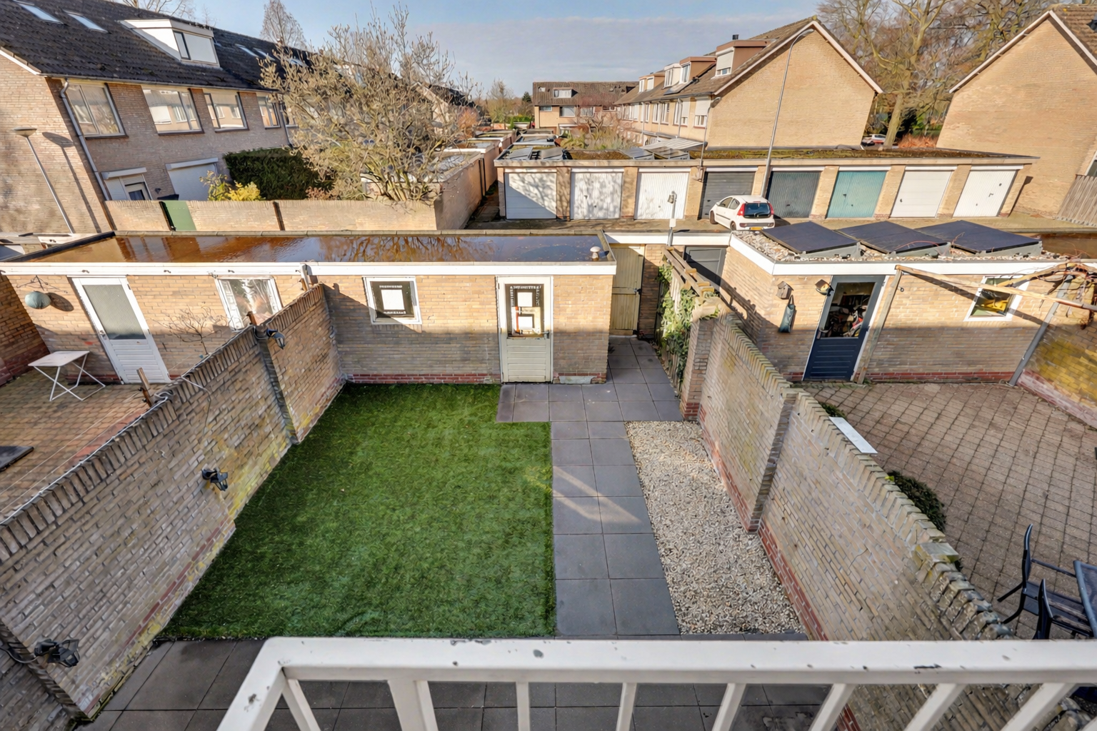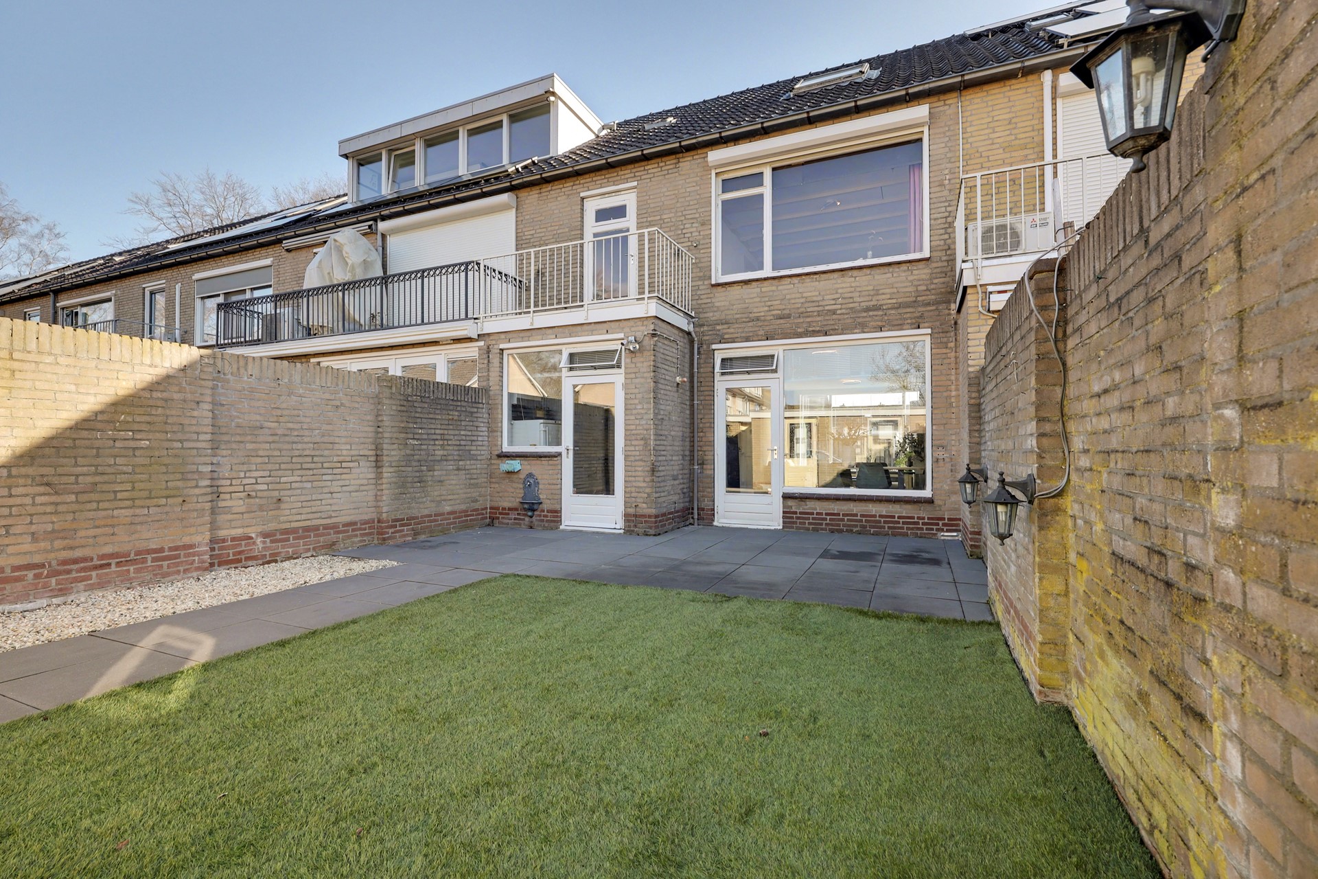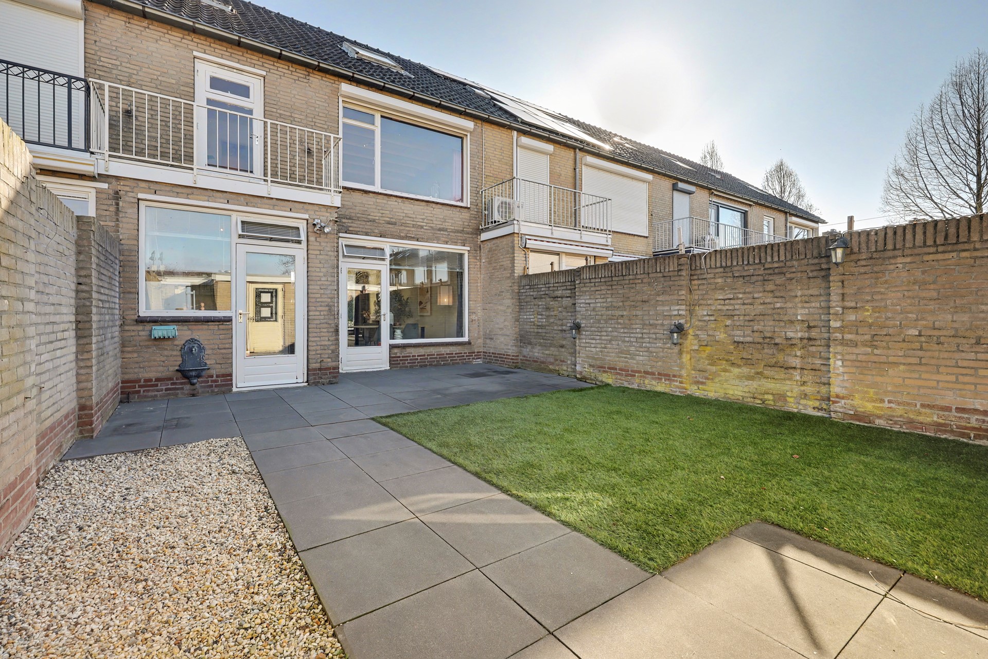 De onderhoudsvriendelijke achtertuin is gelegen op het westen, waardoor je optimaal geniet van de middag- en avondzon. De tuin is verzorgd aangelegd met een combinatie van bestrating en kunstgras, wat zorgt voor een nette uitstraling en minimaal onderhoud.