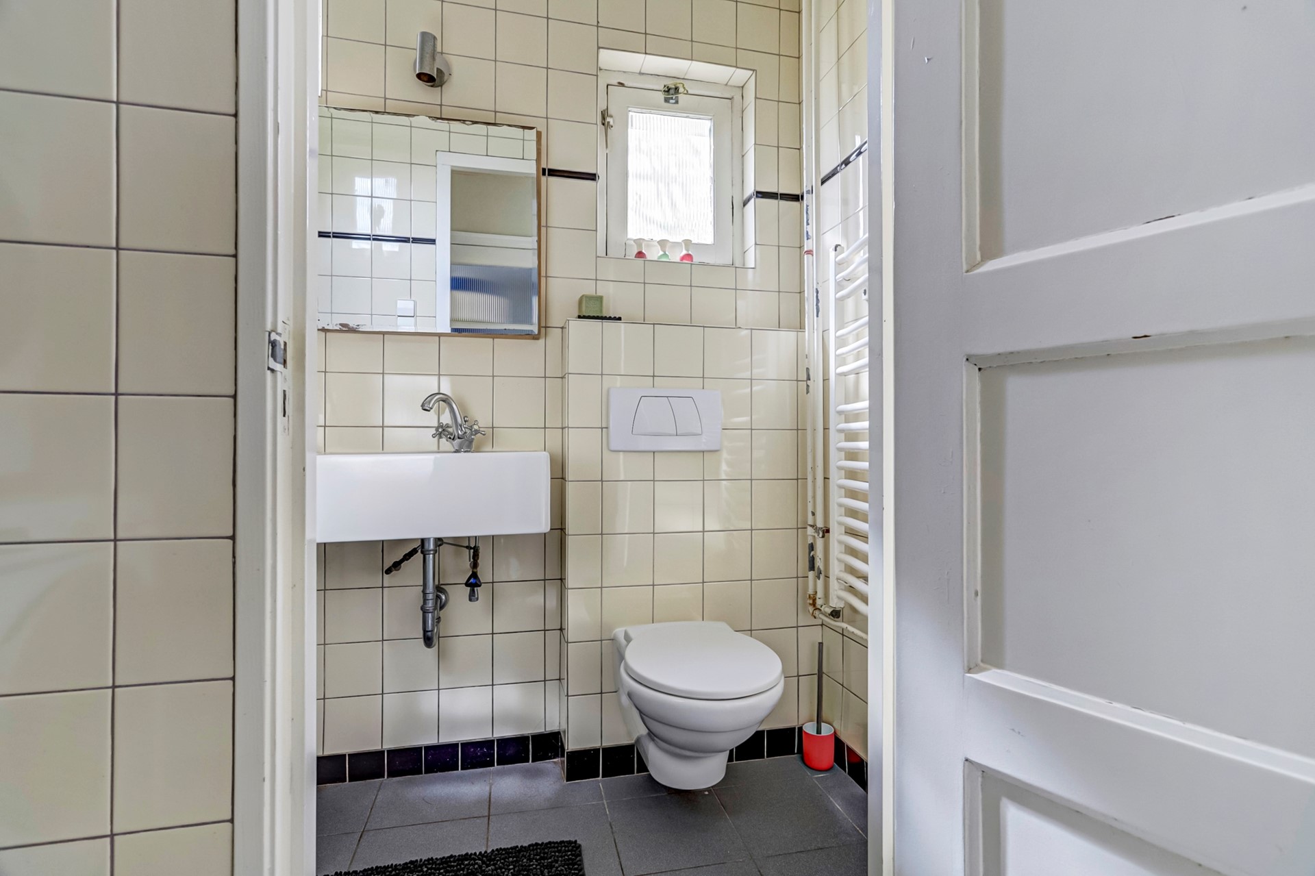 In de keuken zijn een provisieruimte/kleine kelder en een originele vaste servieskast. Aansluitend bevindt zich de bijkeuken met aansluitingen voor wasapparatuur en een warmwaterboiler. Vanuit hier toegang tot de betegelde badkamer met douche, wastafel en toilet.