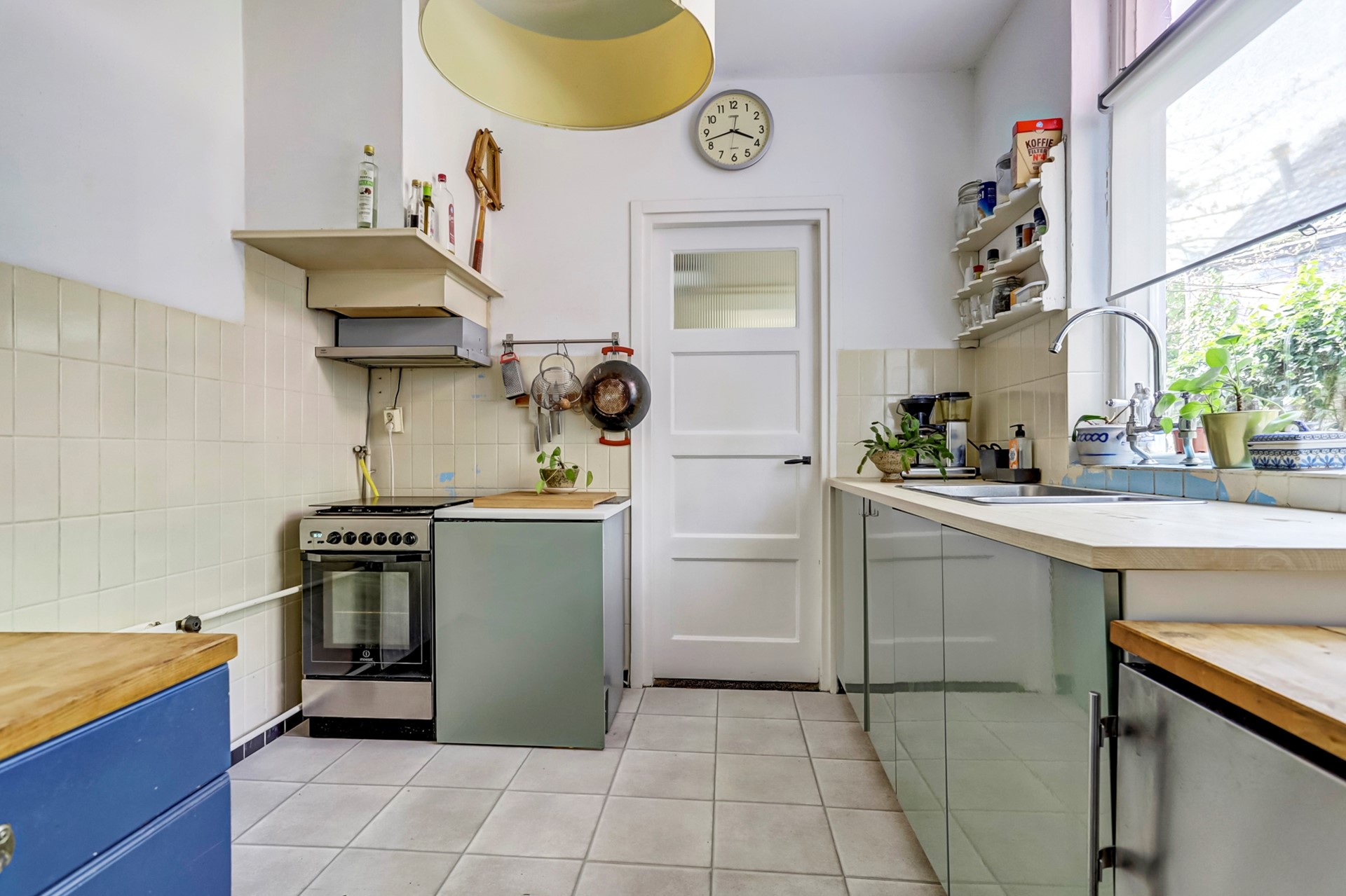 Hoge plafonds, glas-in-lood, paneeldeuren – dit huis ademt karakter. In de lichte woonkamer openen de tuindeuren naar een groene oase vol privacy. De keuken grenst aan de tuin en biedt volop mogelijkheden voor een eigentijdse indeling.