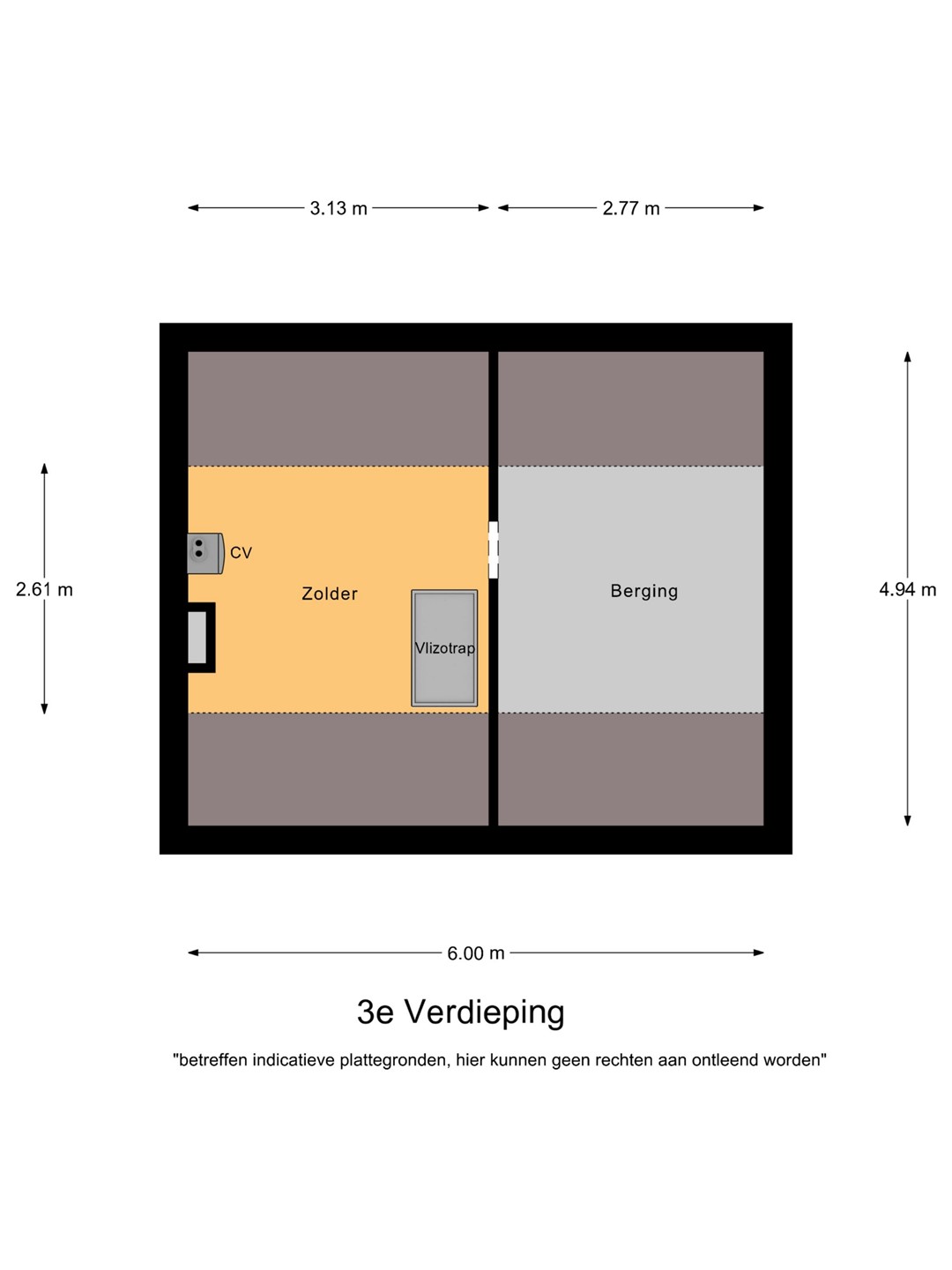 De ruime bergzolder met stahoogte biedt uitbreidingsmogelijkheden. Via een vlizotrap is de zolder bereikbaar; met een vaste trap en dakkapel kan eenvoudig extra woonoppervlak worden gecreëerd. De cv-installatie (2024) bevindt zich hier.