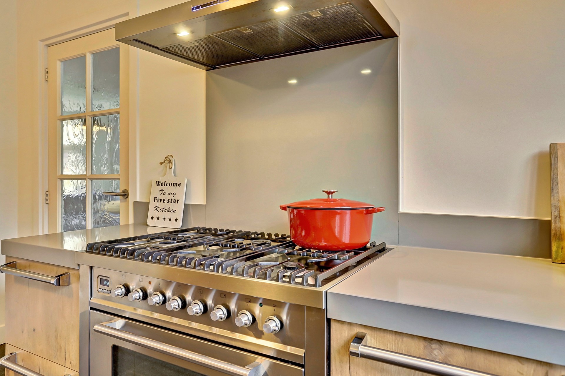 Stel je voor: jij bereidt je maaltijd op het indrukwekkende Boretti-fornuis met grote oven. Hier wordt koken echt een feestje! Daarnaast is de keuken van alle gemakken voorzien: een vaatwasmachine, een handige hoekkast voor de pannen en een ruime spoelbak.
