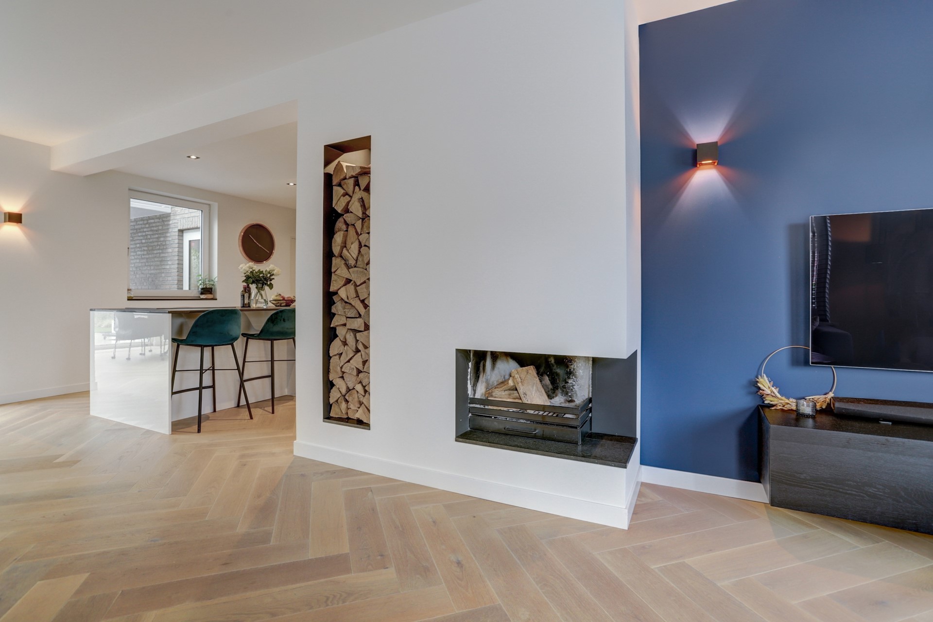 Wat een heerlijke ruimte om in te vertoeven! Zodra je binnenkomt, voel je het meteen: hier is ruimte, licht en vooral… sfeer. Aan de voorzijde van de woning vind je een royale zithoek waar je na een drukke dag lekker kunt neerploffen. En met de open haard aan zit je er in de wintermaanden zó knus bij dat je bijna vergeet dat het buiten koud is.