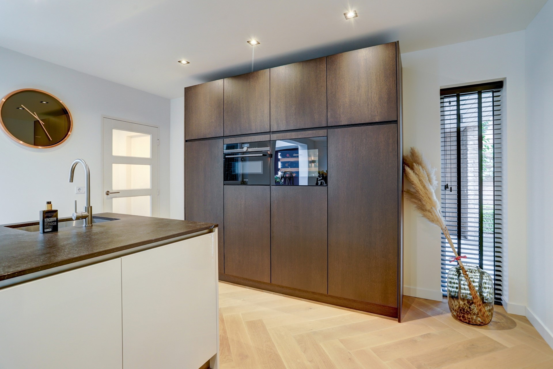 Wat een plaatje van een keuken! Deze luxe leefkeuken is niet alleen een lust voor het oog, maar ook een droom voor elke kookliefhebber. Het royale kookeiland vormt het stralende middelpunt. hier wordt gekookt, geborreld en vooral veel gekletst. Ook de kastenwand past perfect in het het geheel!