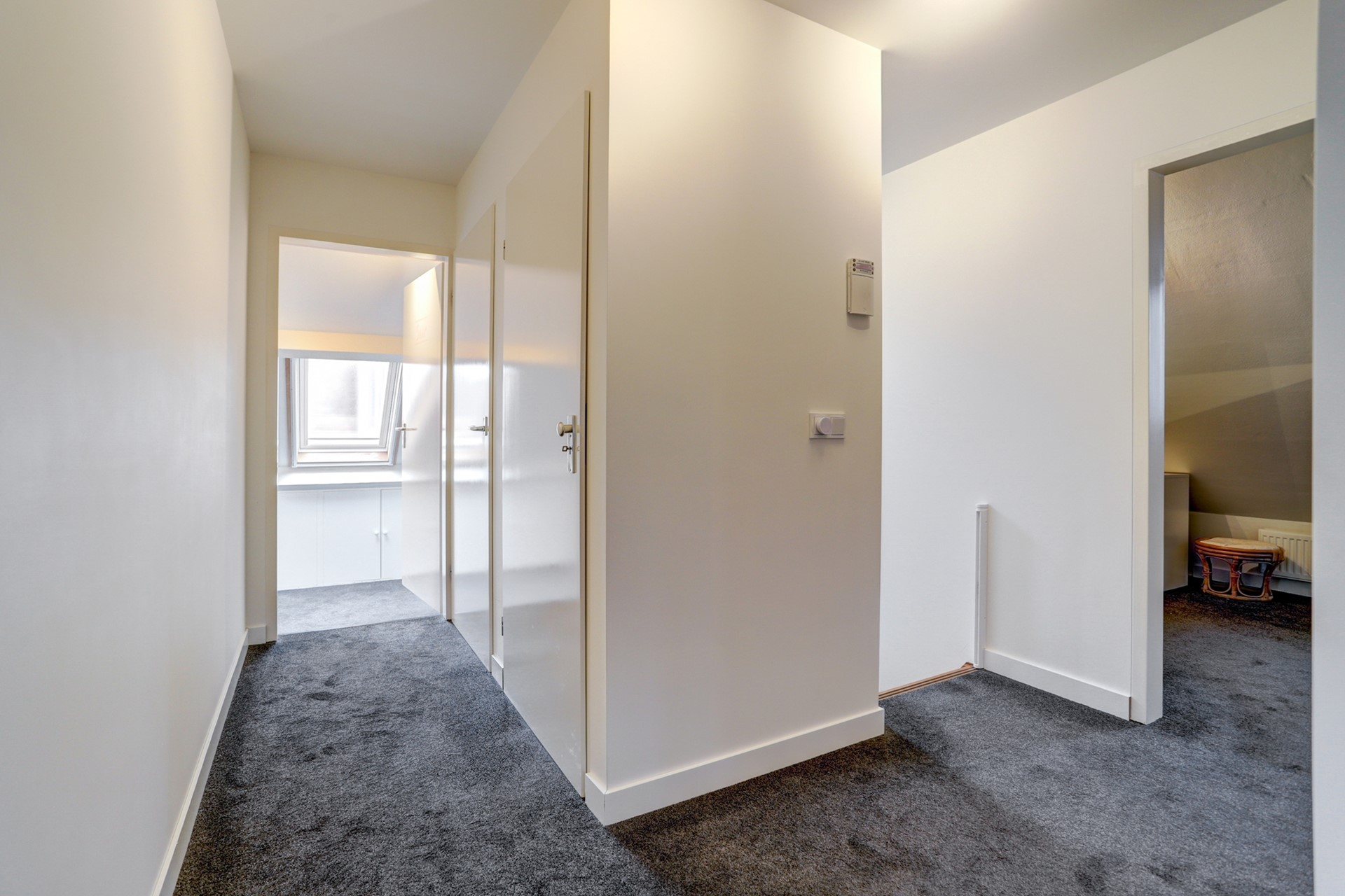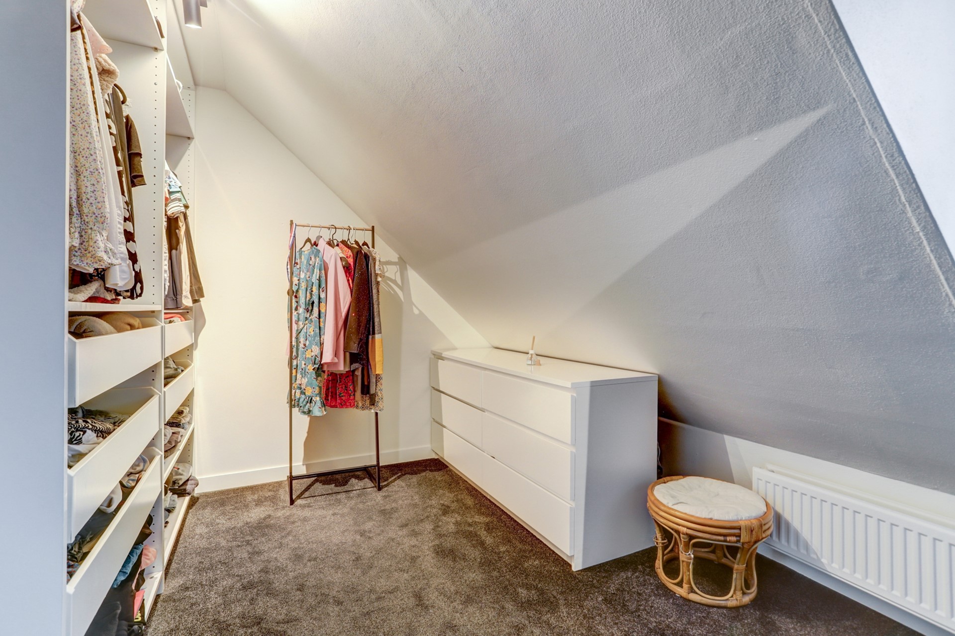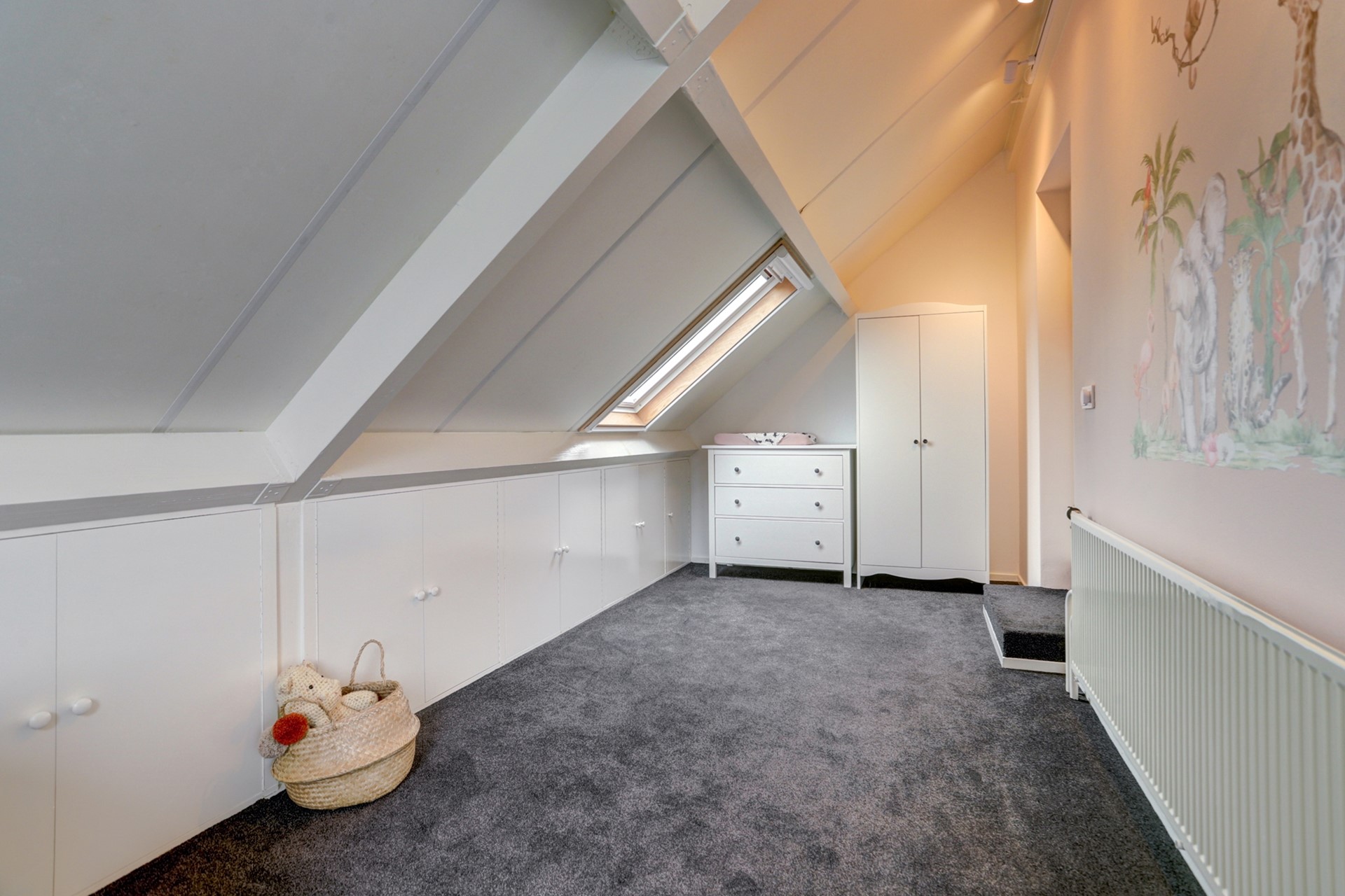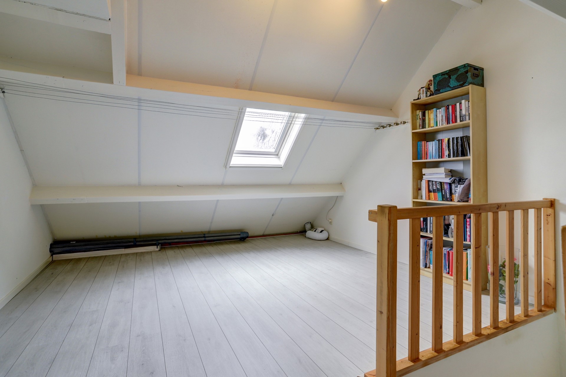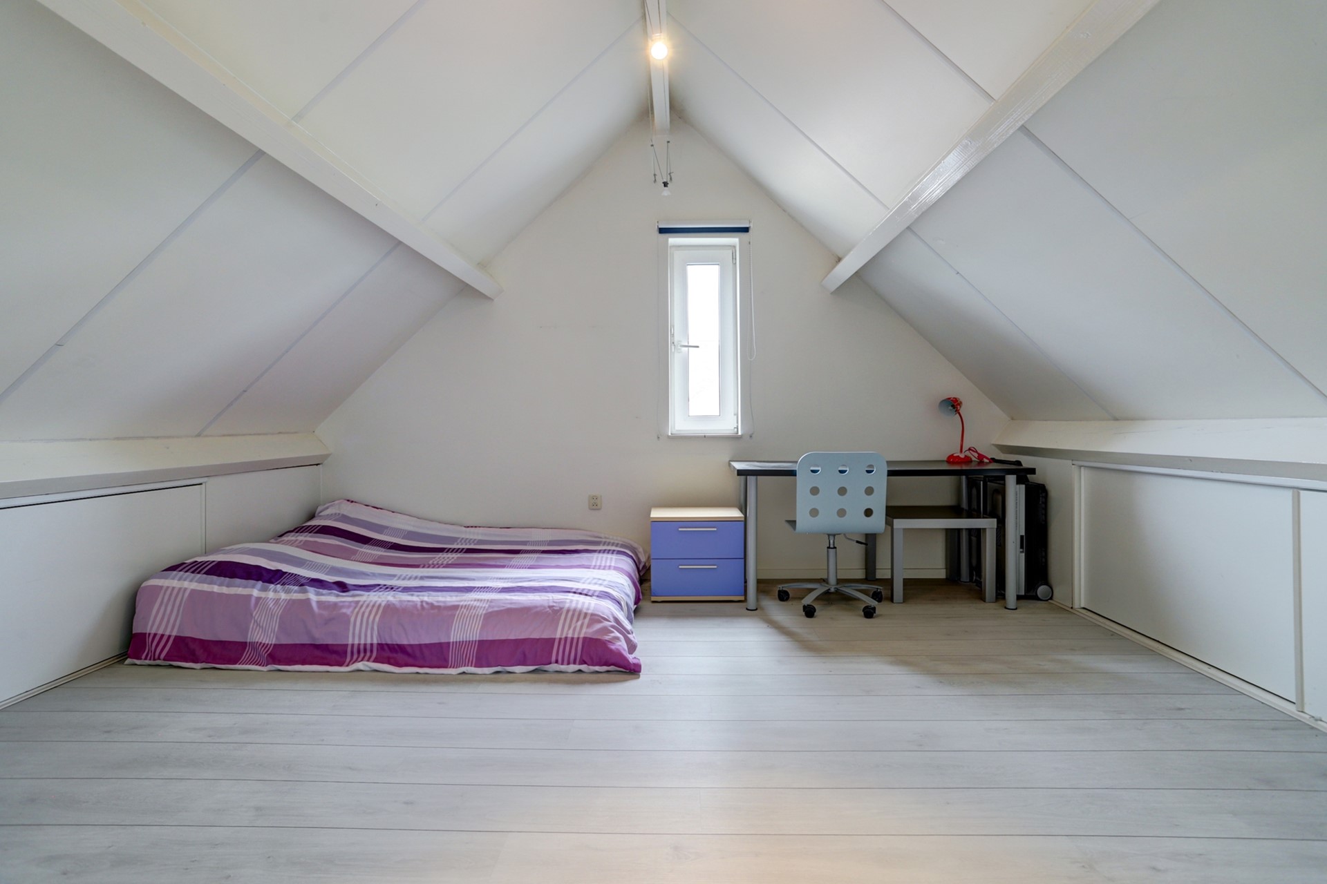 Middels vaste trapopgang is de tweede verdieping bereikbaar, welke opgedeeld is in twee aparte ruimtes. De voorzolder is een ideale plek om seizoensspullen in op te slaan. De tweede ruimte is een royale kamer die perfect kan functioneren als extra slaapkamer, maar ook prima als extra werkplek of als hobbyruimte. De gehele verdieping is afgewerkt met een nette laminaatvloer en strakke wanden.