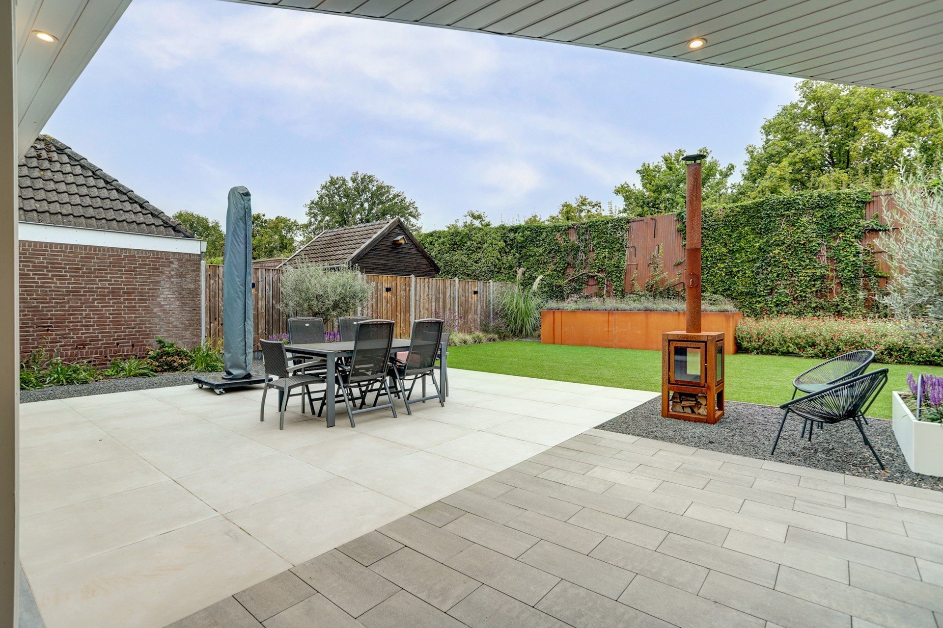 En dan de tuin... Wauw! De achtertuin is vorig jaar volledig onder architectuur aangelegd, royaal, groen en helemaal af dankzij de stijlvolle overkapping. Ook de voortuin is volledig vernieuwd, dus het plaatje klopt van voor tot achter.