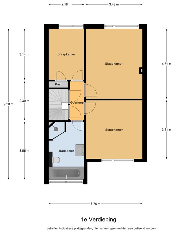 Middels vaste trap bereik je de ruime overloop met toegang tot drie slaapkamers, badkamer en vaste trapopgang naar tweede verdieping. De overloop is voorzien van een laminaatvloer, gestuukte wanden en MDF plafond.