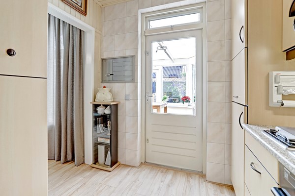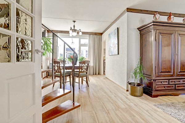 Middels looppad bereik je de voordeur van de woning. Wil je liever achterom? Aan de rechterzijde zit de poort met toegang tot de achtertuin en natuurlijk de woning. De entreehal is voorzien van een vernieuwde laminaatvloer en beschikt over een meterkast, een garderobenis en betegeld toilet v.v. closet en fonteintje. Vanuit de hal krijg je toegang tot de woonkamer.