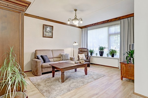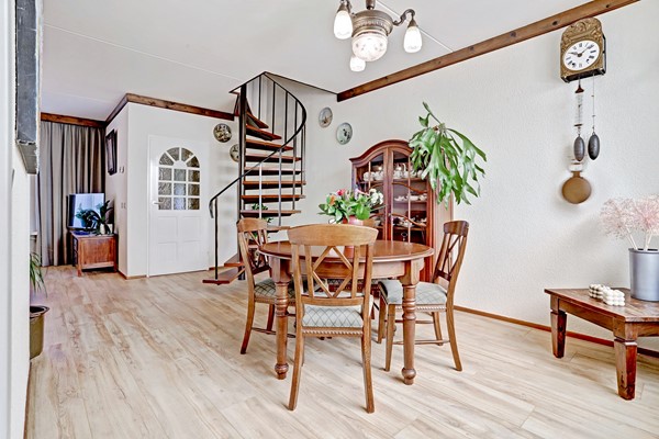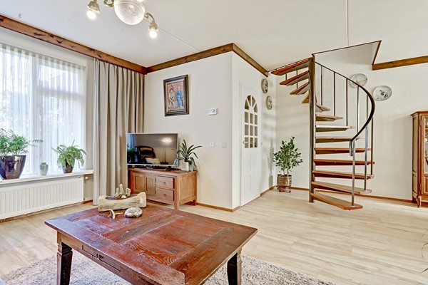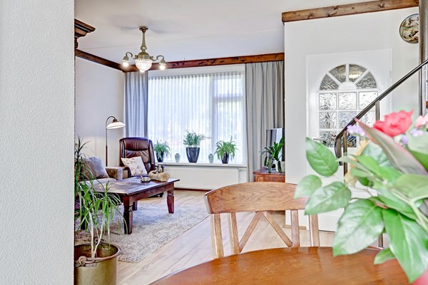 Wat een heerlijke lichte ruimte om te verblijven. Deze royale woonkamer met grote raampartijen aan weerszijde zorgt voor meer dan voldoende daglicht. De voorzijde wordt in gebruik genomen als zithoek met genoeg ruimte voor een grote loungebank en geeft een fraaie uitkijk over het straatbeeld. In het midden van de woonkamer is een vaste open wentelrap naar de eerste verdieping aanwezig met toegang tot het eetgedeelte met aansluitend de keuken. Aan de achterzijde van de woonkamer is een royale serre/tuinkamer over de gehele breedte aangebouwd.