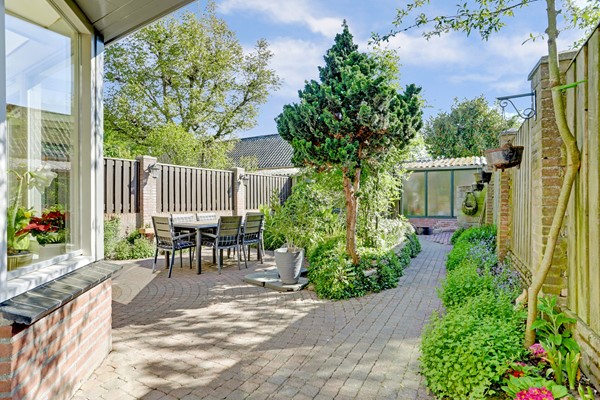 Loop naar buiten en geniet van deze fijne achtertuin. Doordat er geen directe achterburen zijn geniet van je optimale privacy. De tuin is goed onderhouden en beschikt over diverse beplanting en sierbestrating. Aan de achterzijde is nog een dubbele berging aanwezig met een poort die toegang geeft tot je achterom.
