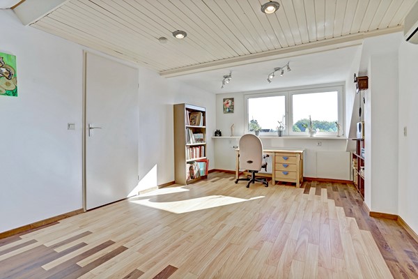 Middels vaste trap bereik je de ruime tweede verdieping welke opgedeeld is in een voor-en achterzolder. Over de gehele achterzijde is een royale dakkapel v.v. stolpramen geplaatst die zorgt voor extra veel ruimte en veel natuurlijk daglicht. De voorzolder is ingedeeld in een aparte ruimte waar de Nefit CV installatie en de aansluitingen voor de wasmachine zijn gerealiseerd. Een doorgang naar de achterzolder biedt meer dan voldoende ruimte voor een vierde slaapkamer en is voorzien van opbergruimte onder de schuine kanten en de airco zorgt voor de nodige koeling op deze verdieping.
