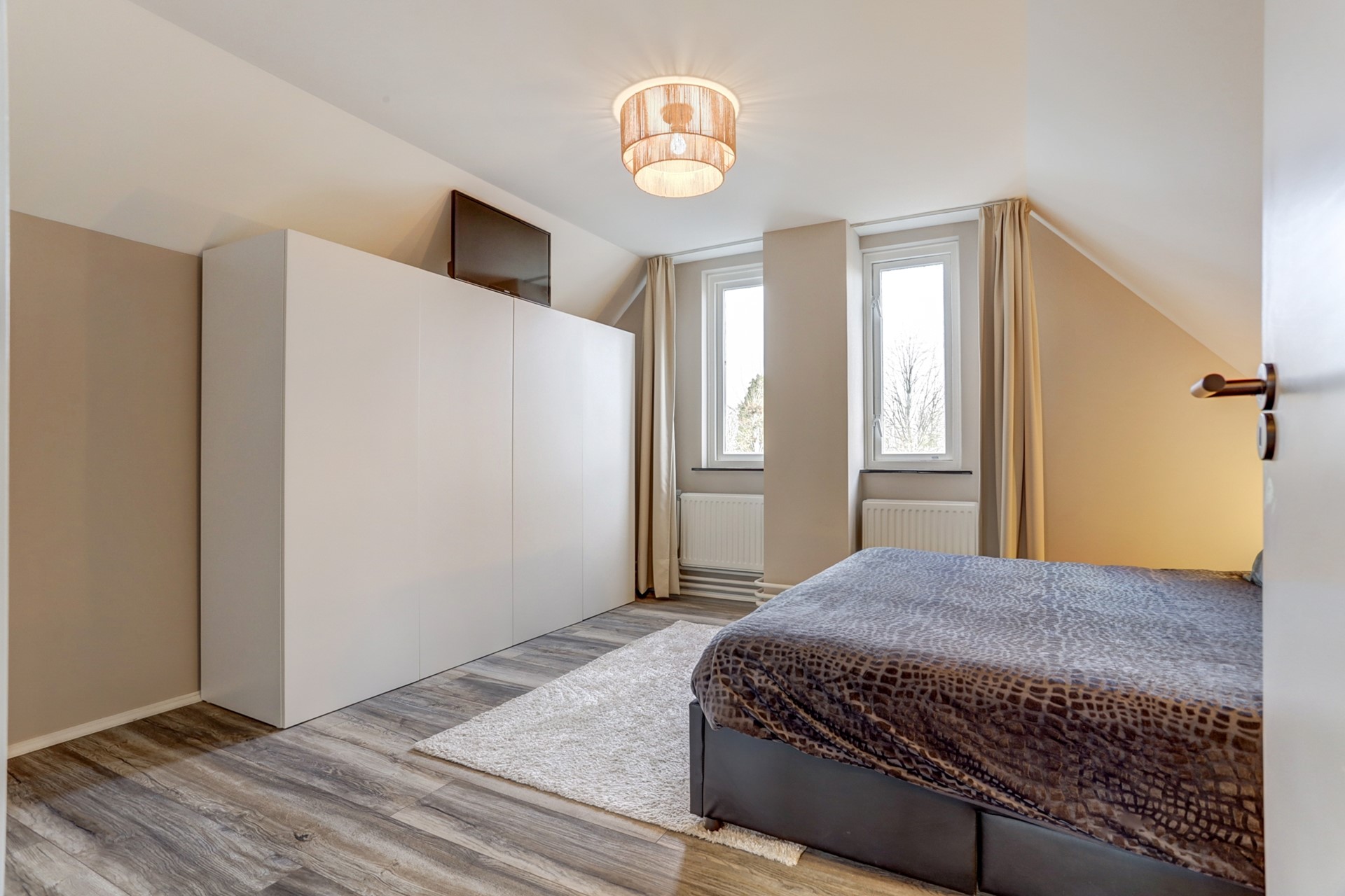 De verdieping beschikt over twee slaapkamers van verschillende afmetingen. De masterbedroom ligt aan de oostzijde van de woning en biedt volop ruimte voor een tweepersoonsbed én een (vaste) kledingkast. Vanuit deze kamer heb je bovendien direct toegang tot de royale badkamer, ideaal voor extra comfort en privacy.