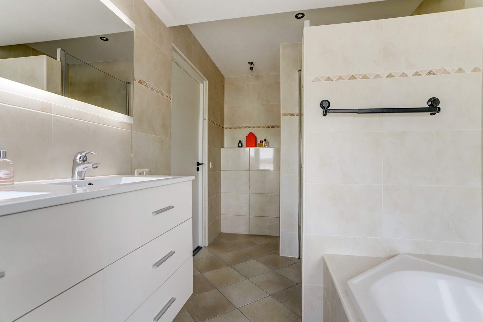 Laat je verrassen door de royale badkamer die vanuit de slaapkamer te bereiken is. Hier vind je niet alleen een comfortabel ligbad om heerlijk te ontspannen maar ook een moderne inloopdouche en een praktisch badmeubel met wastafel. Deze ideale badkamer maakt jouw ochtendroutine een waar genot!