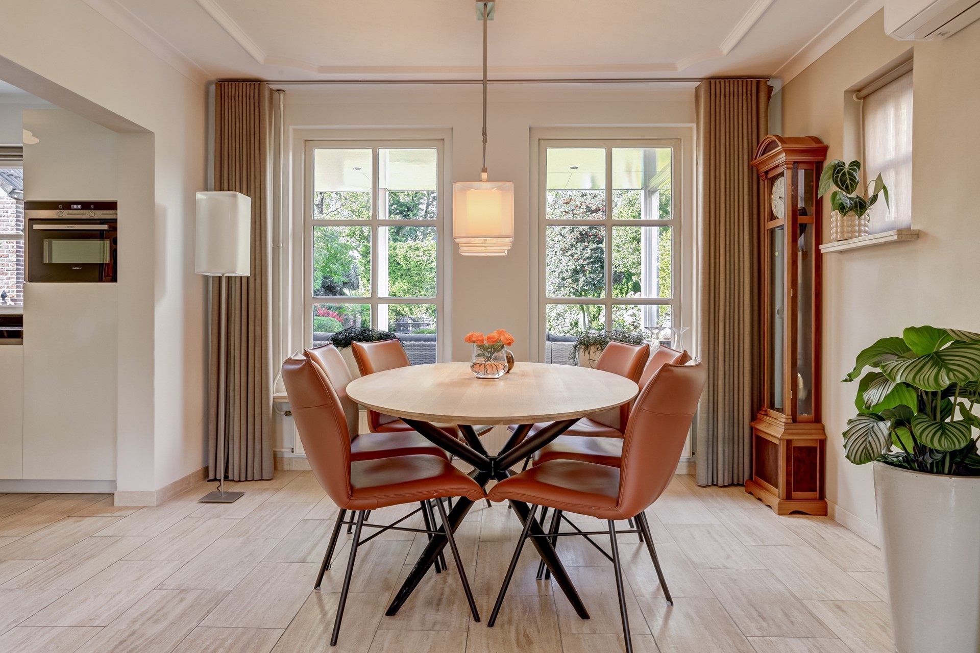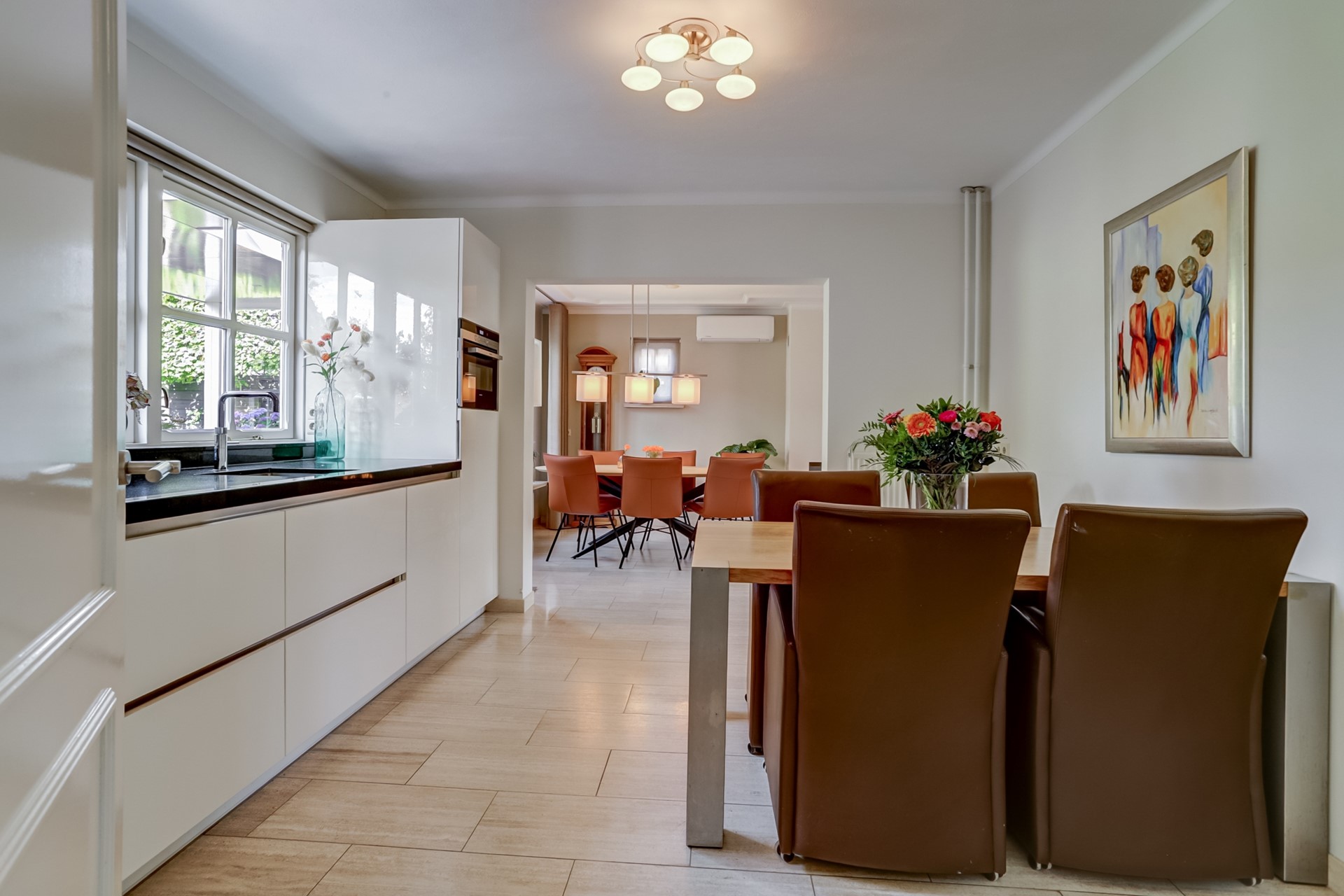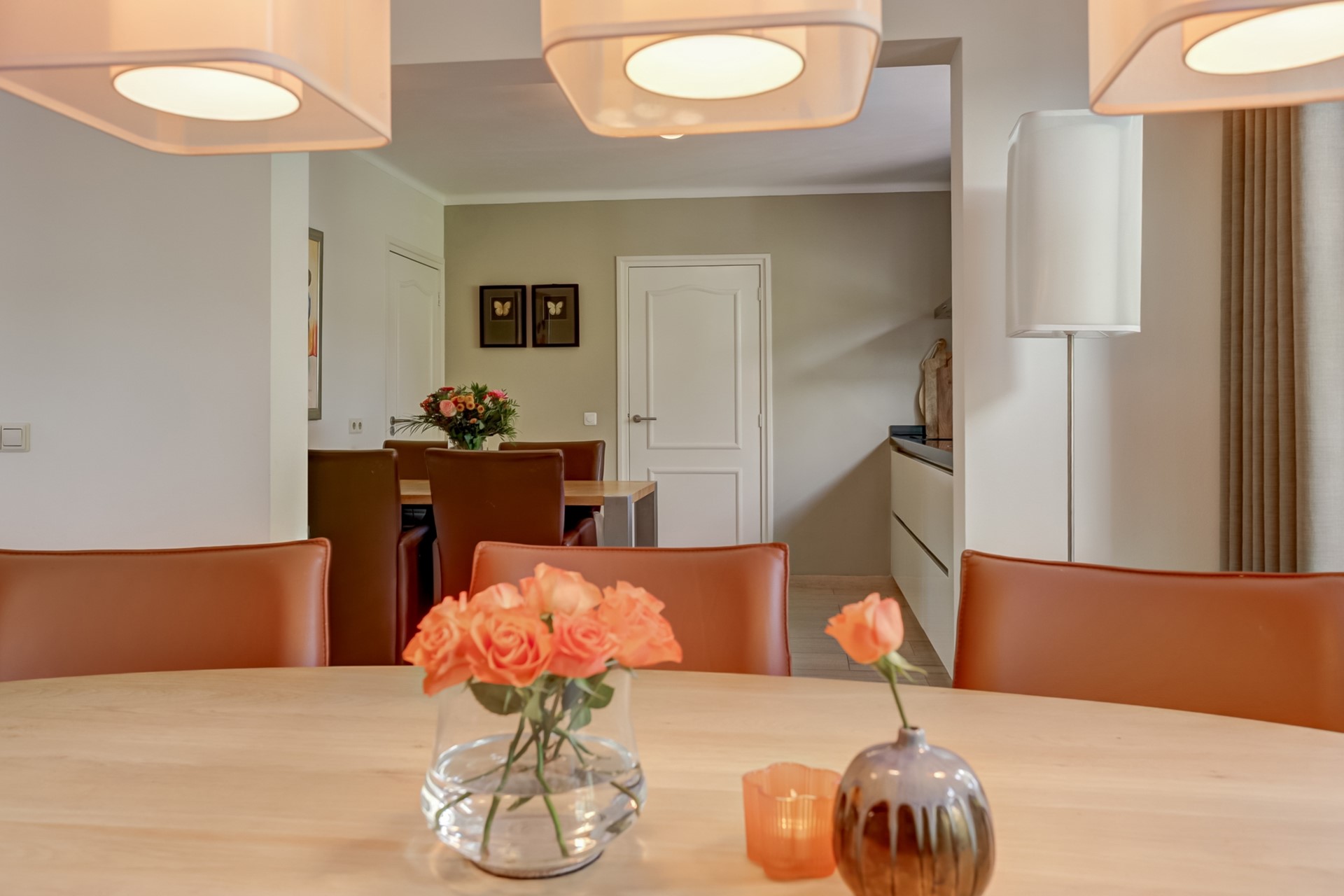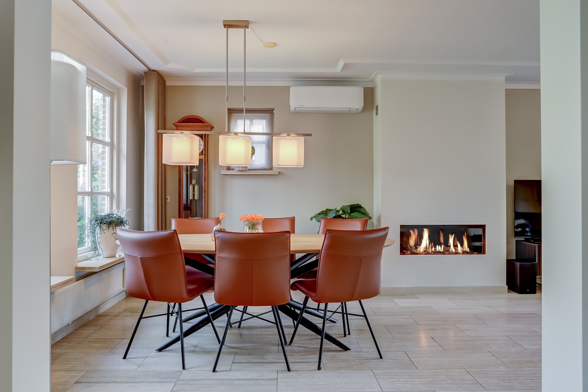 De living heeft een fijne L-vorm en is omringd door raampartijen, waardoor het daglicht volop binnenvalt en je het gevoel hebt altijd verbonden te zijn met de buitenwereld. Want ja, waar je ook kijkt, het is hier heerlijk groen. En alsof het nog niet comfortabel genoeg is: de praktische airco zorgt hier het hele jaar door voor een aangename temperatuur.