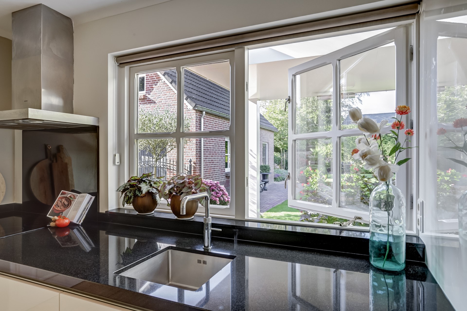 De strakke hoogglans afwerking in combinatie met het granieten werkblad geeft meteen een luxe gevoel. Hier krijg je spontaan zin om iets lekkers te bereiden! De keukeninrichting is van alle gemakken voorzien: een 4-pits inductiekookplaat, afzuigkap, combi-magnetron, koelkast en vaatwasser. In 2024 hebben de huidige bewoners een Quooker laten plaatsen, een fijne toevoeging die zorgt voor extra gemak in de keuken.