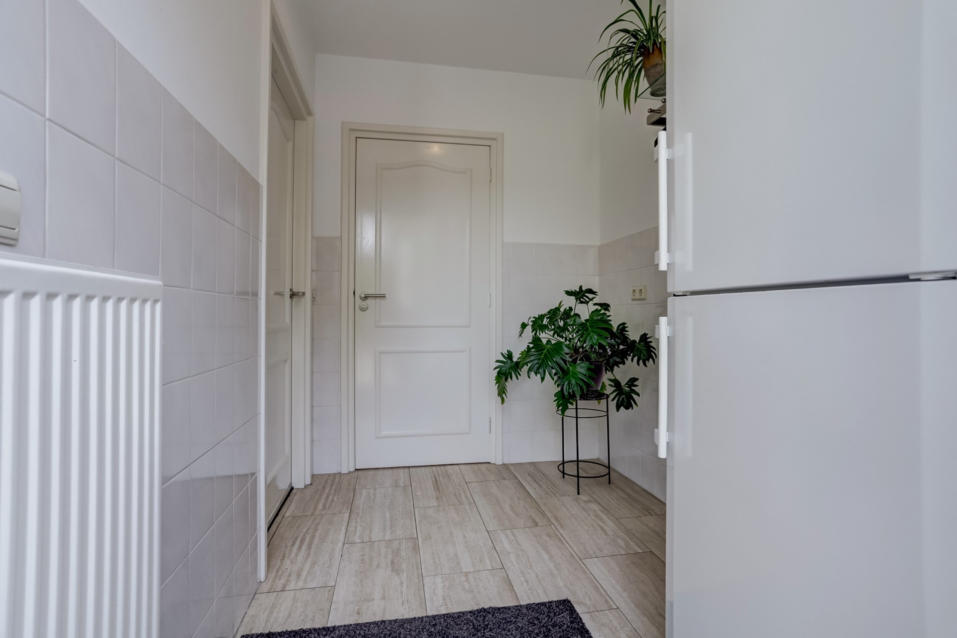 De bijkeuken is precies zo’n ‘achterom’ zoals je dat verwacht bij een huis met karakter. Aan de ene kant loop je direct de tuin in, terwijl aan de andere kant een lichte, neutraal betegelde toiletruimte met toilet en fonteintje is gesitueerd. Terug in de bijkeuken vind je volop mogelijkheden om bijvoorbeeld een diepvries of extra garderobe te plaatsen. De bijkeuken is deels betegeld en voorzien van dezelfde marmeren vloer als de rest van de begane grond, wat zorgt voor een mooie, harmonieuze afwerking.