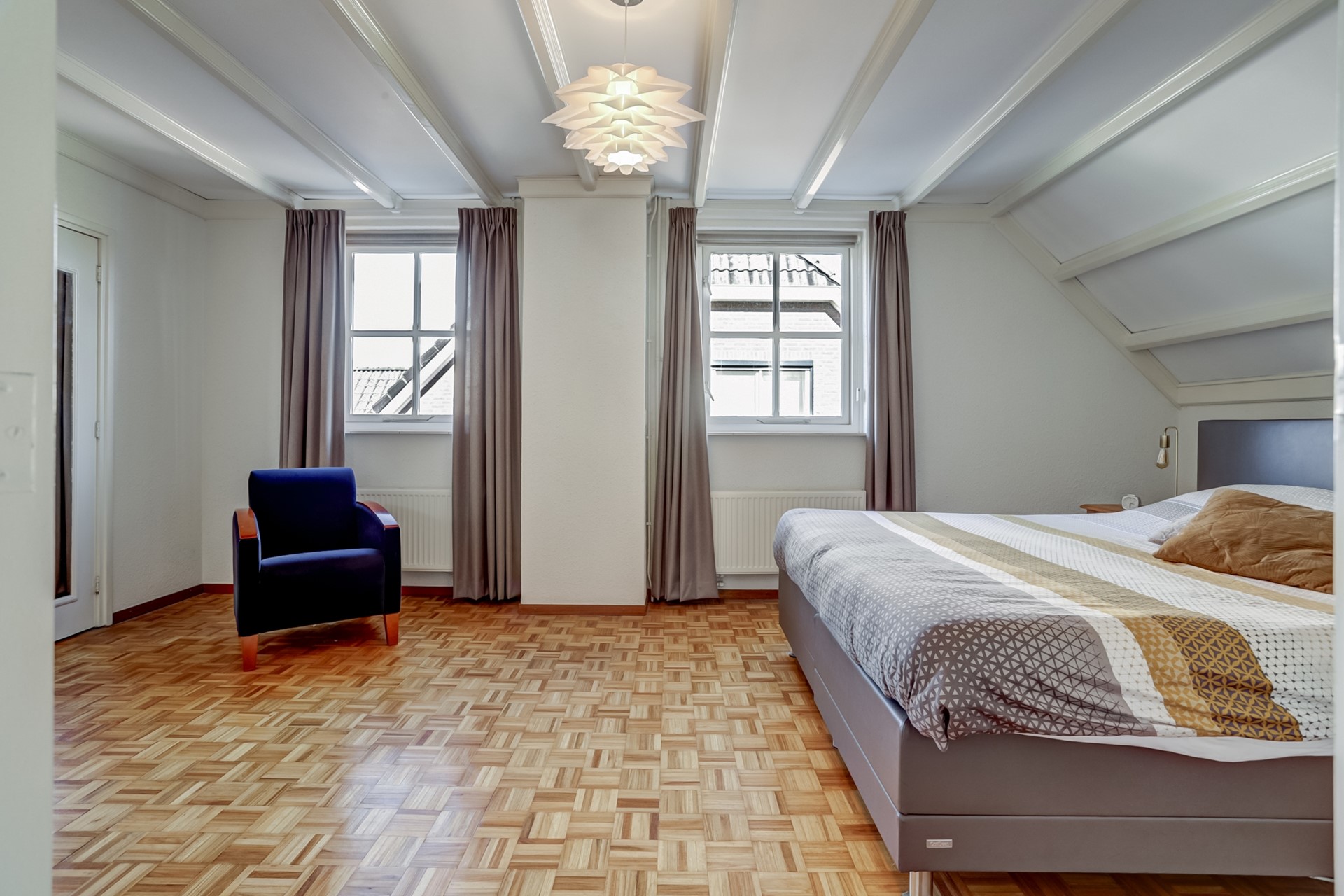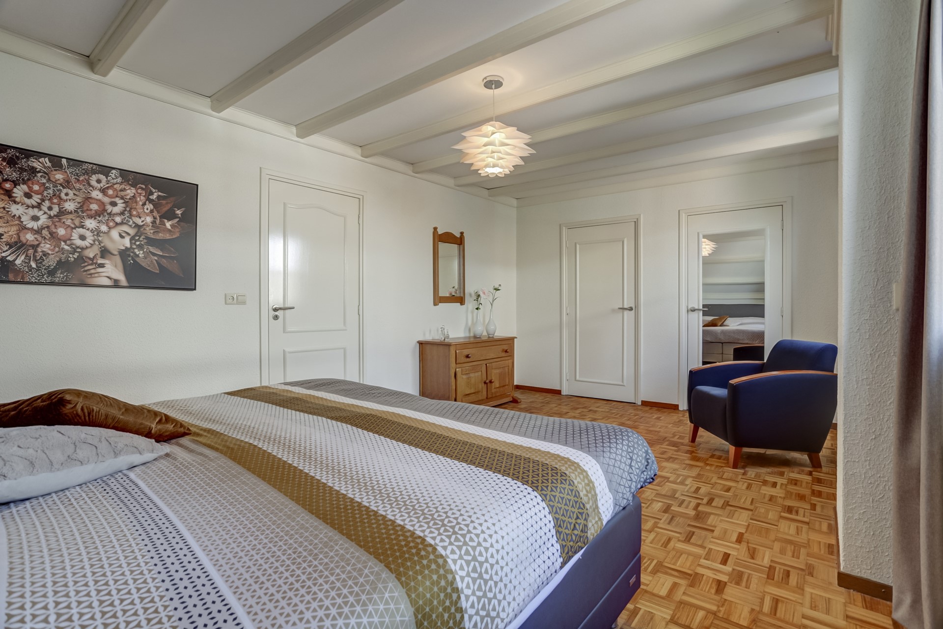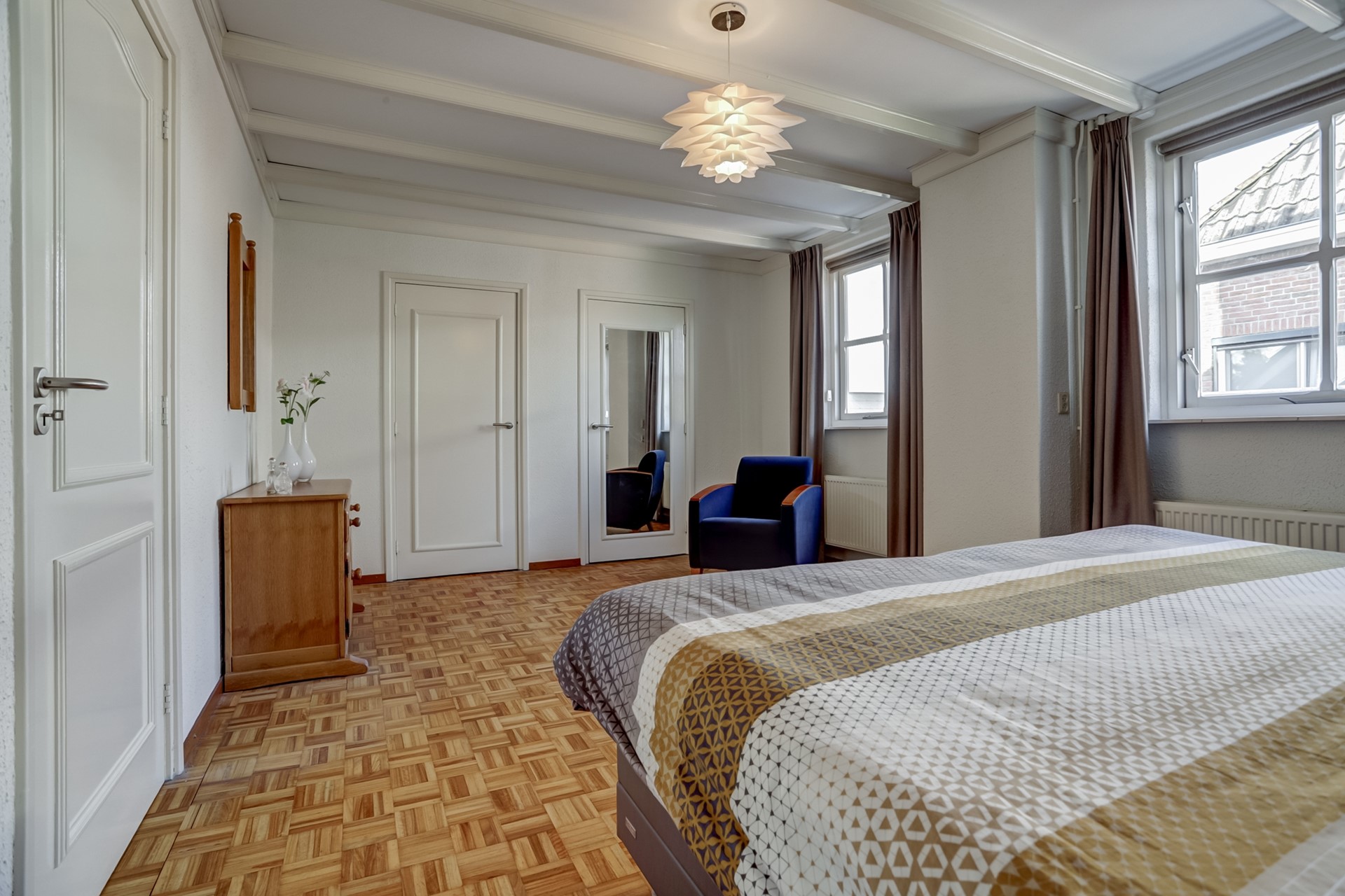 Wauw, de master! Deze ruime slaapkamer mag die naam absoluut dragen. Heerlijk licht, met een neutrale afwerking, een prachtig blokparket op de vloer, rustige wanden en een sfeervol balkenplafond. De hardhouten raamkozijnen zijn in oktober 2025 voorzien van HR++ beglazing, wat zorgt voor extra comfort en isolatie. Hier is meer dan genoeg plek voor een kingsize bed. En niet te vergeten: achter twee deuren vind je de perfecte ruimte om jouw eigen ruimte voor de kleding te creëren.