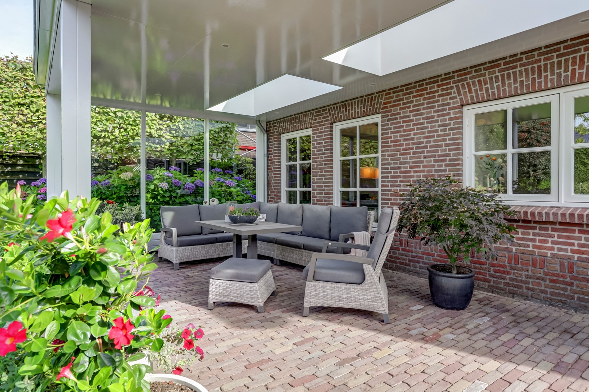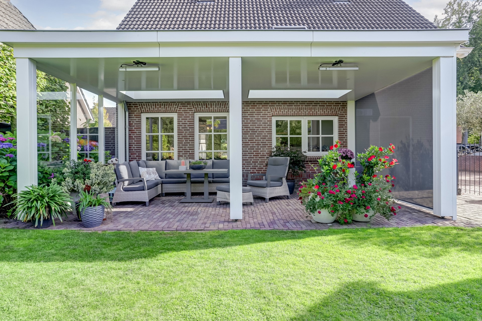 - Fraaie overkapping met veiligheidsglas geplaatst in 2020 en in 2024 voorzien van een screen