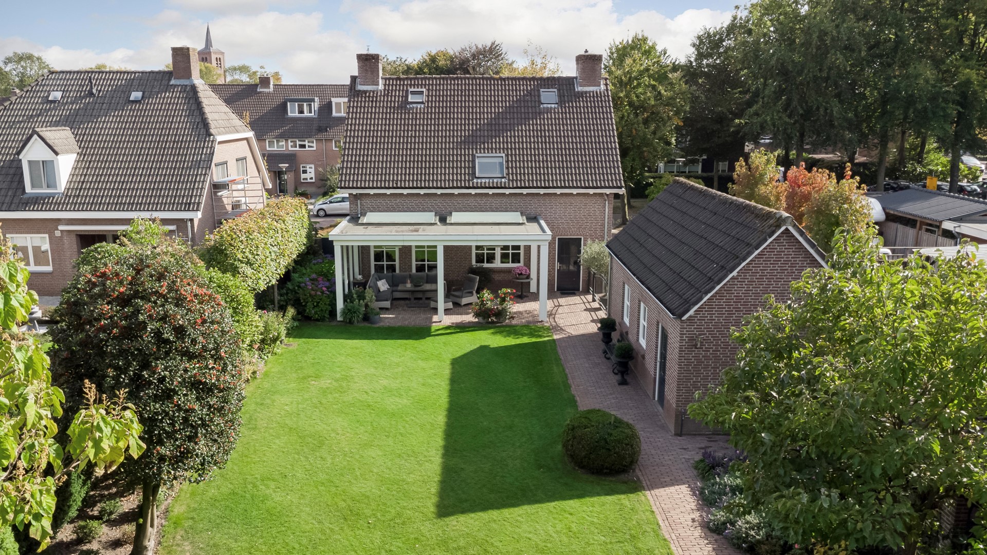 En dan die tuin... wauw. Wat een plek. Groen, stijlvol en met zoveel sfeer dat je haast zou vergeten dat je ook nog binnen kunt zitten. Je hoort de vogels en je voelt de ruimte en je denkt bij jezelf: ja, dit is genieten. En alsof dat nog niet genoeg is, staat er ook nog een royale vrijstaande garage op het perceel. Niet alleen een flinke extra aan ruimte, maar ook een plek vol mogelijkheden.
